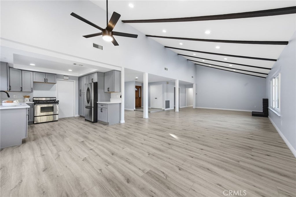 Beamed Ceilings, Ceiling Fan(s), Open Floorplan, Recessed Lighting, All Bedrooms Down