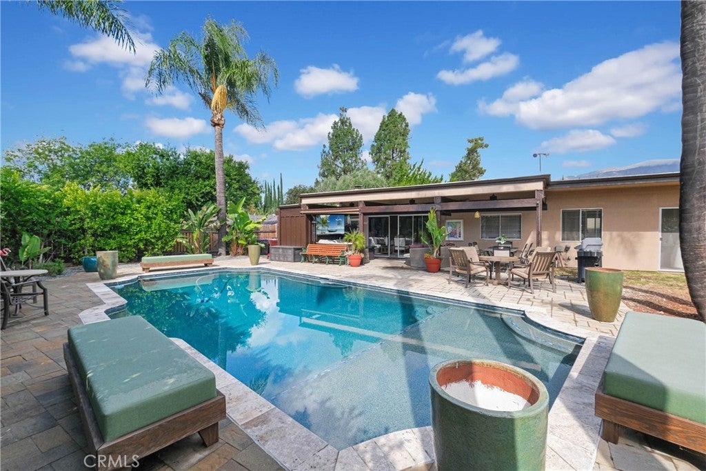 Welcome to your dream home in the desirable North Claremont neighborhood! This beautifully updated 4-bedroom, 3-bathroom residence features a bright, open living room overlooking the serene backyard and a formal dining area perfect for entertaining. The spacious family room offers a cozy fireplace and easy access to the outdoor space. A breakfast nook sits adjacent to the well-appointed kitchen. The primary suite enjoys direct backyard access, providing a private retreat with peaceful views. All secondary bedrooms are spacious and versatile for family, guests, or a home office. Enjoy resort-style living in your backyard oasis featuring a sparkling Pebble Tec pool with Baja deck, new pool equipment, paver patio, and expansive covered patio ideal for outdoor dining. The large, flat and all usable backyard offers room extension and ADU opportunity. The front yard boasts drought-tolerant landscaping with a drip system. Recent upgrades include remodeled bathrooms, Italian ceramic tile flooring, three dual-pane vinyl sliding doors, new water heater and A/C, custom checkerboard 3-car garage flooring and full pool renovation. Located in the award-winning Claremont school district, close to parks, shopping, and easy freeway access. Don’t miss this exceptional home!