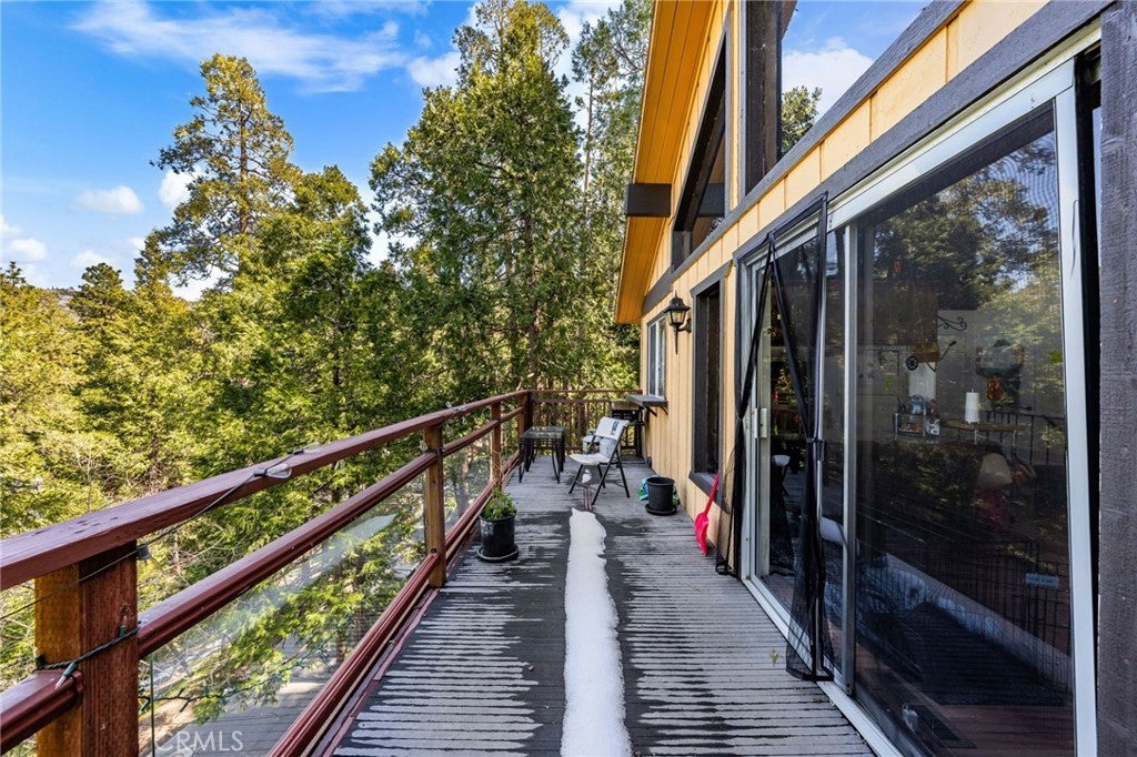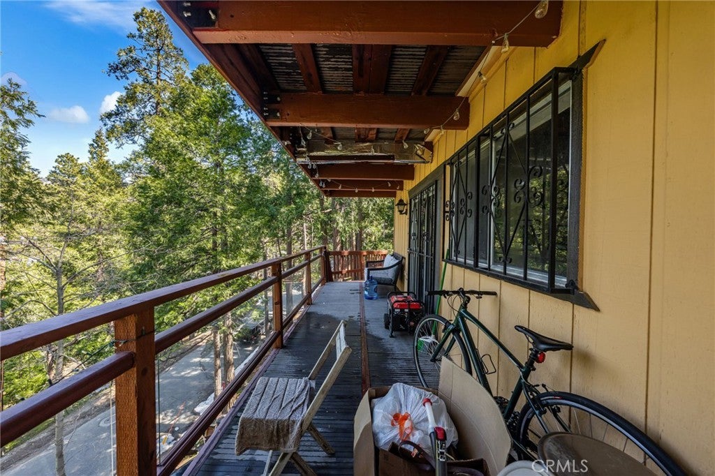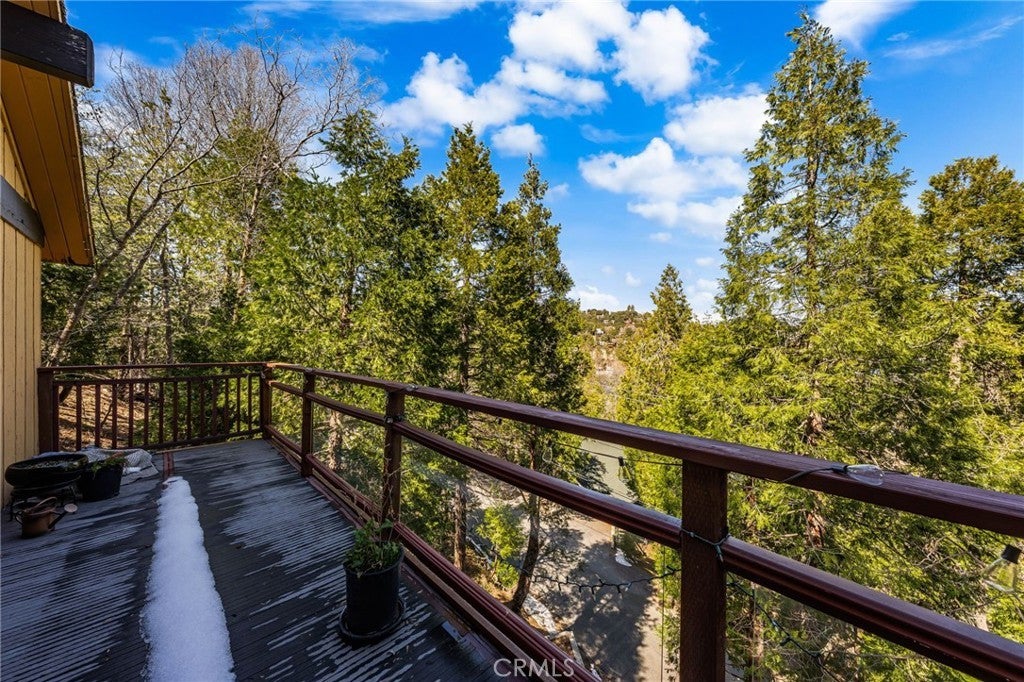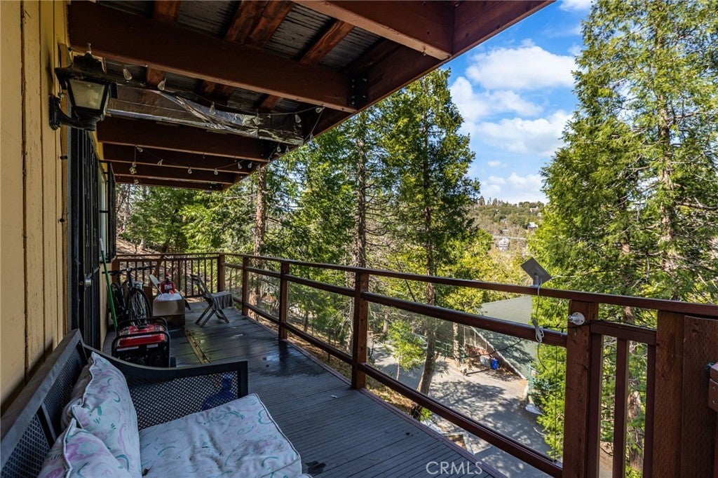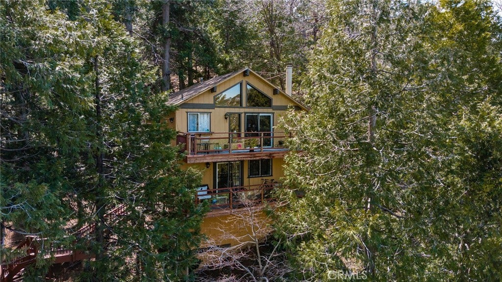 Welcome to your serene mountain sanctuary! Nestled in the picturesque community of Crestline, this inviting retreat perfectly blends rustic charm with modern comfort. Step inside to a bright, open-concept kitchen and dining area, where soaring vaulted ceilings and a cozy stone fireplace create the perfect ambiance for entertaining or relaxing after a day at the lake. Vaulted wall windows and oversized sliding glass doors frame breathtaking views of the surrounding forested landscape and Crestline Lake, flooding the home with natural light and connecting seamlessly to the upper balcony—ideal for morning coffee or sunset wine. Downstairs, a spacious and tranquil living area awaits, alongside generously sized bedrooms and a beautifully updated bathroom. Step out onto a second expansive balcony and take in the peaceful sounds of nature—this is mountain living at its finest. Just a short walk to Crestline’s charming town center, including Goodwin & Sons Market, local eateries, the library, and scenic Lake Gregory, you’ll have both convenience and adventure at your doorstep. Bonus: This sale includes two additional adjacent lots—one on each side of the home—offering extra privacy, usable space, or future development potential. Whether you’re looking for a peaceful full-time residence or the perfect weekend escape, this unique property is your opportunity to own a slice of mountain paradise.