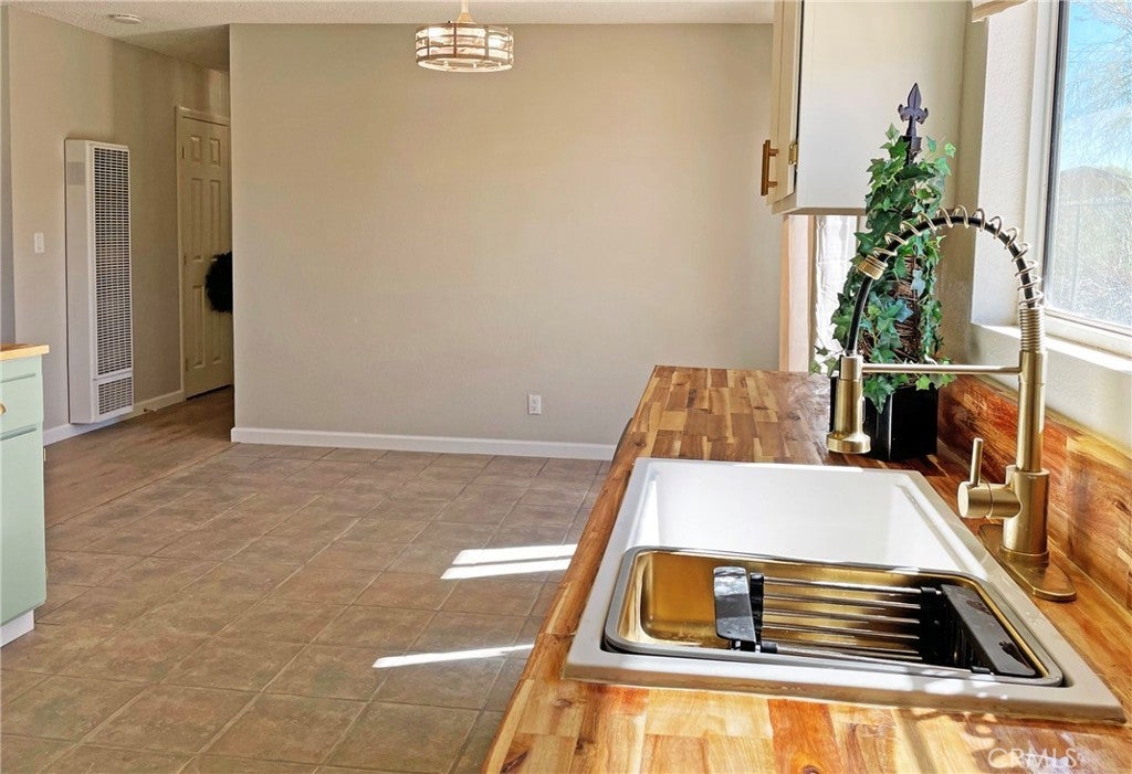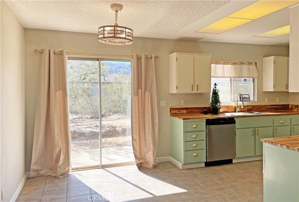 Fresh, Thoughtful Upgrades Throughout. This refreshed desert-style home features 3 bedrooms, 2 bathrooms, and about 1,248 square feet of upgraded, light-filled living space. Perched near Joshua Tree National Park and located close to the Chocolate Drop area, this home captures the soulful beauty of high-desert living. Step across gorgeous new flooring that flows from room to room, uniting the interior with modern elegance and ease of care. New blinds add clean, adjustable light control and privacy, balancing bright desert sunshine with serene interiors. The interior has been freshly painted in neutral tones, offering a calm, clean, and timeless backdrop that enhances the bright, airy feel. Throughout the home, new ceiling fans have been installed — stylish, efficient, and helping to circulate air for comfortable living during warm desert days and nights. Brand-new closet doors bring upgraded organization and storage to everyday life. In the heart of the home, the kitchen is elevated by a warm, character-rich butcher block counter-top, offering a timeless surface that’s both stylish and functional. The bathrooms shine with new vanities and new toilets, each fitting seamlessly into the home’s refreshed aesthetic. The property includes a finished, attached two-car garage — clean, functional, and seamlessly connected to the home. Whether for vehicles, storage, or workshop needs, this garage adds convenience and utility. The yard has been regraded, smoothing out slopes, improving drainage, and creating a clean slate for your landscaping vision. With no existing landscaping in place, this space invites you to shape it as you please — be it minimal desert design, rock gardens, seating zones, or pathways that accentuate the views. A central ducted evaporative cooler ensures cool, comfortable air throughout the home during warmer desert months. Schedule a tour today!