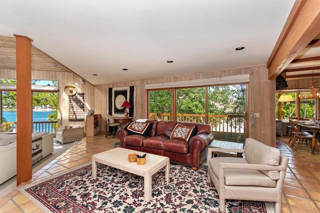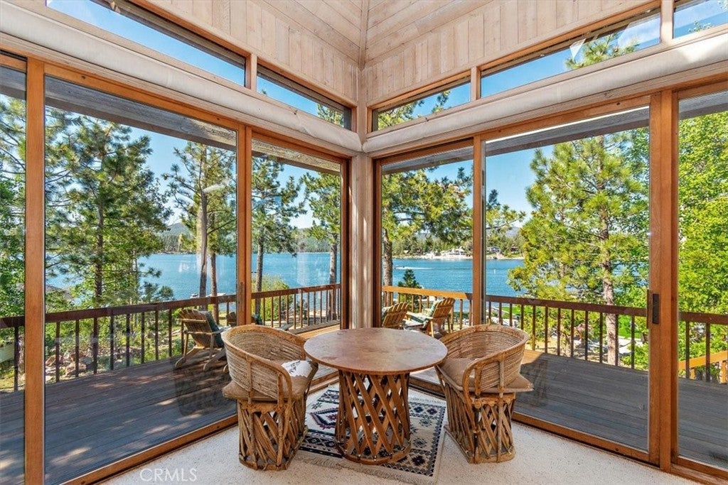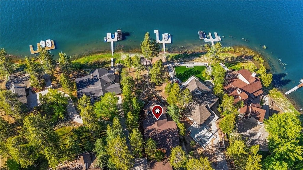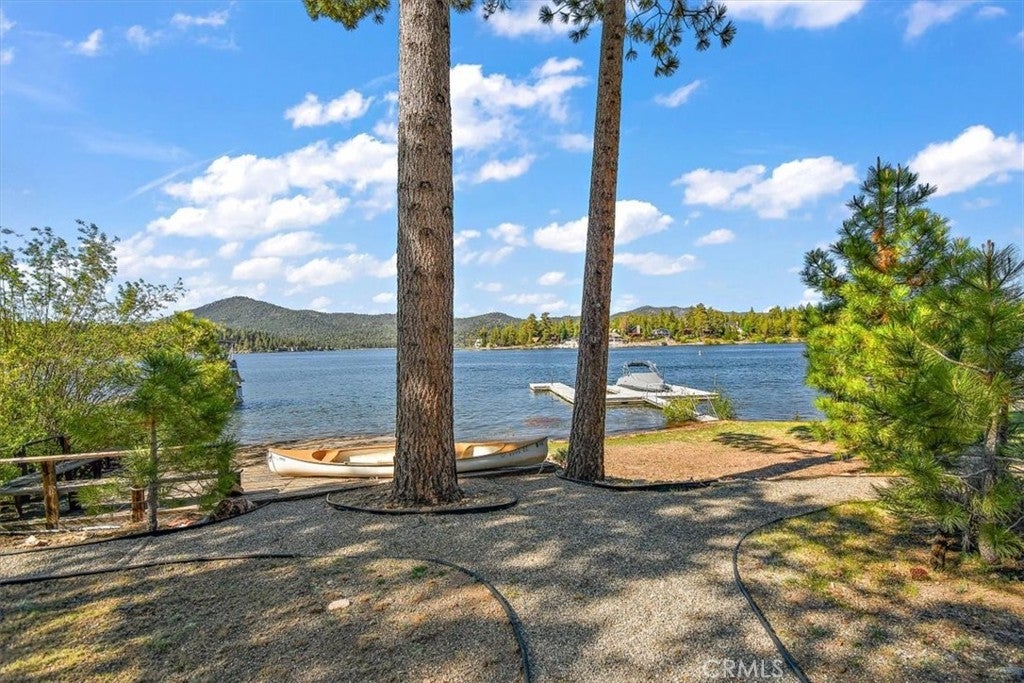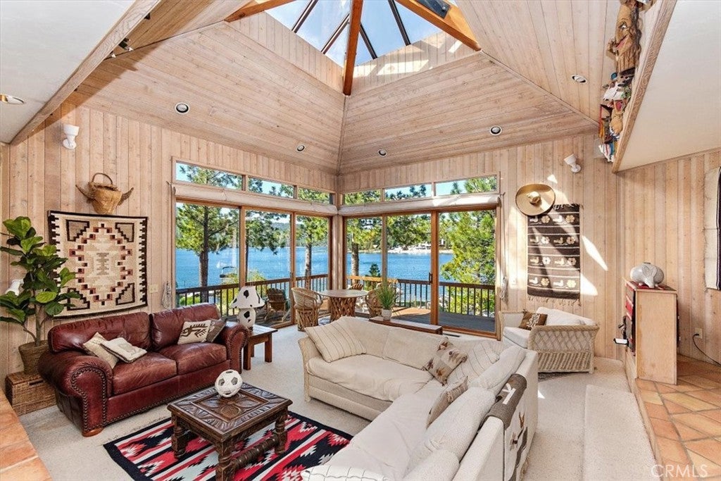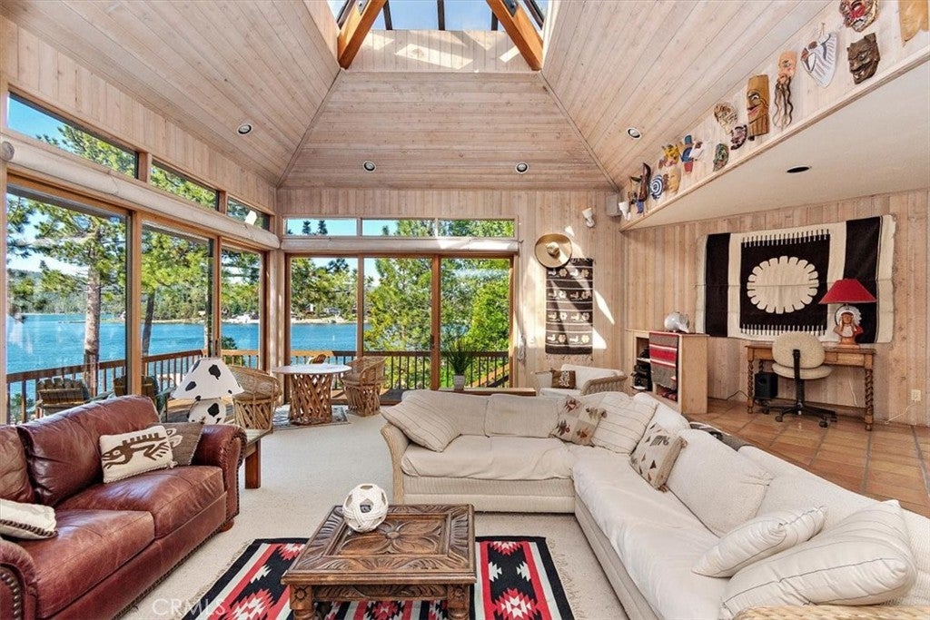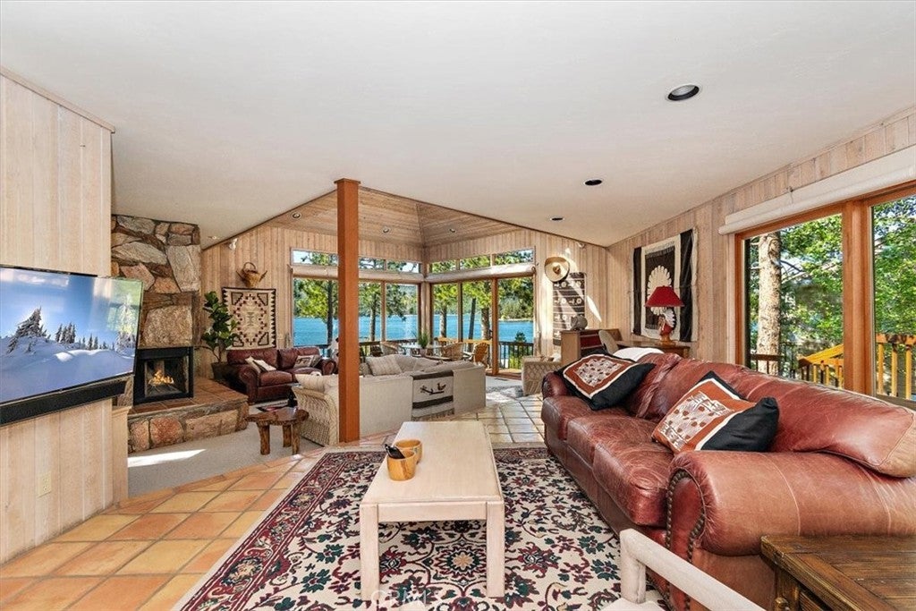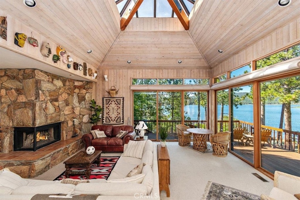 This spectacular Waterview Shores lakefront provides the BEST that Big Bear lakeside living has to offer with its coveted deep water, wind protected lake access in a quiet, peaceful location. Relax and enjoy the welcoming lake views and soaring pines from the spacious outdoor wrap-around decking. Or if being active is more your style, your very own boat dock is just steps away for conveniently enjoying adventures on Big Bear Lake. Cathedral skylights and walls of lake facing windows offer an amazing light and bright feel bringing the outdoors inside, highlighting the lodge style fireplace and exposed beam vaulted ceilings. The open floor plan allows for plenty of space to accommodate friends, family and for entertaining. Three bedrooms offer ensuite baths with the master featuring native stone fireplace. Don't miss the downstairs bunk room/game room - a convenient get-away for the kids! The detached two car garage has room for all your mountain and lake toys and potential winter boat storage. Come see Big Bear lakefront living at its finest! ____________________________________________________________________________
