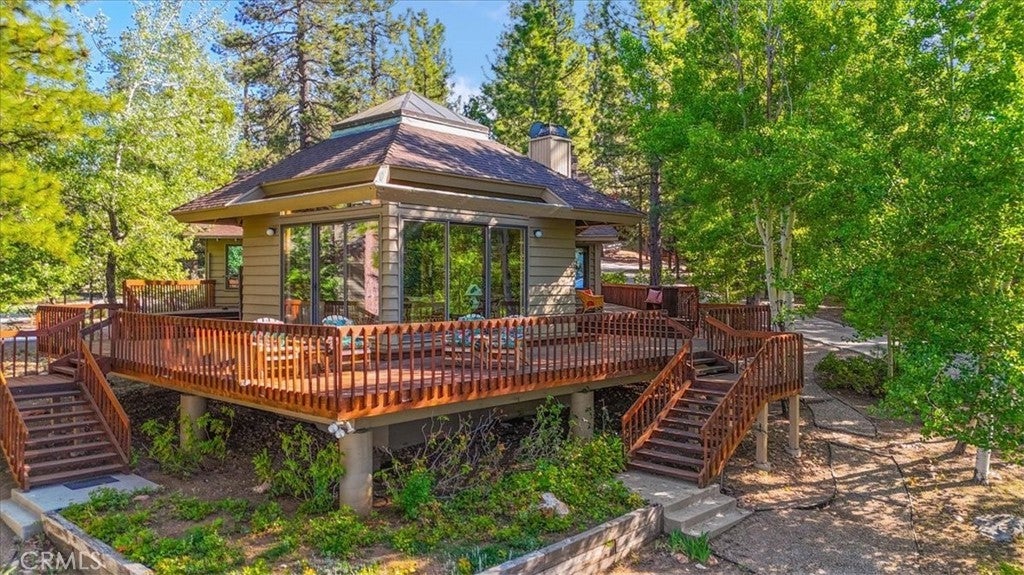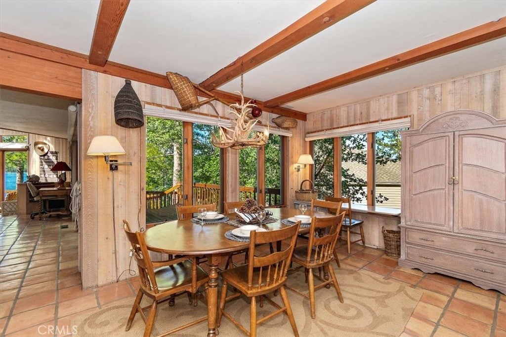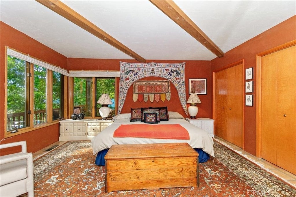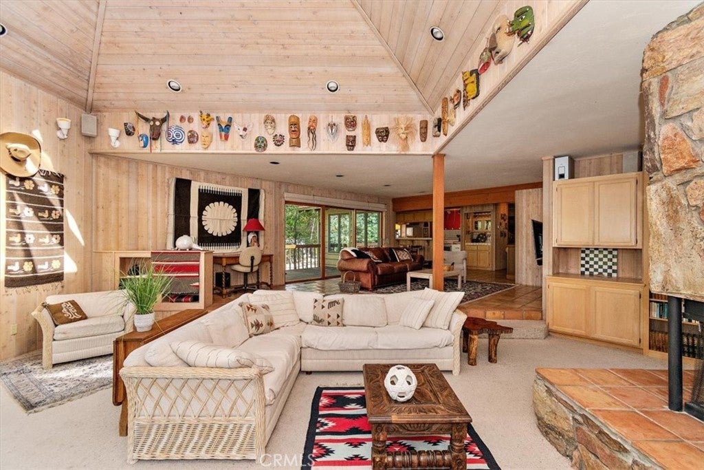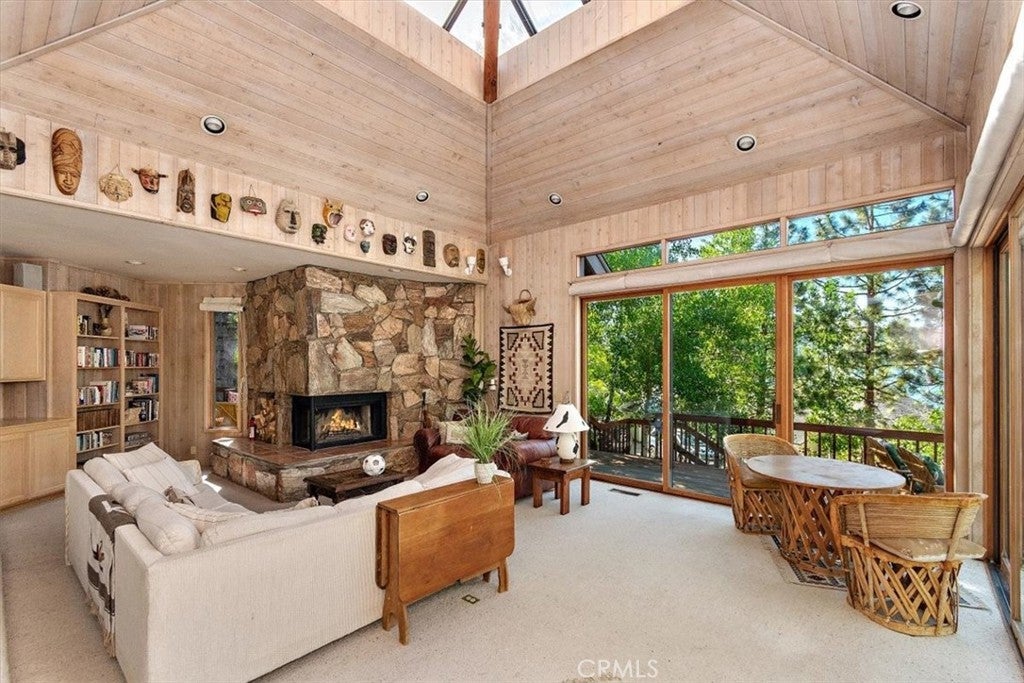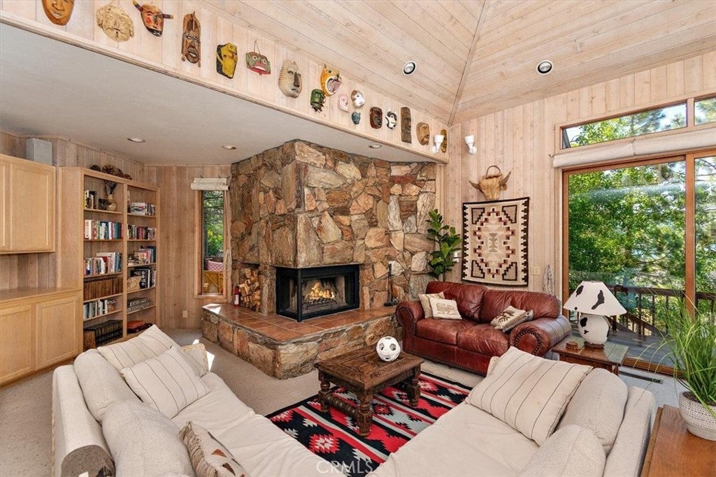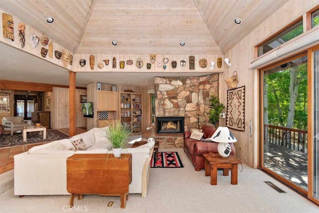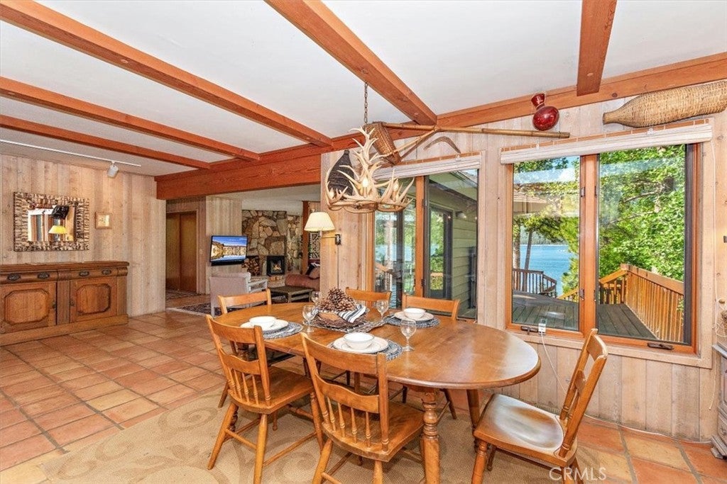 This spectacular Waterview Shores lakefront provides the BEST that Big Bear lakeside living has to offer with its coveted deep water, wind protected lake access in a quiet, peaceful location. Relax and enjoy the welcoming lake views and soaring pines from the spacious outdoor wrap-around decking. Or if being active is more your style, your very own boat dock is just steps away for conveniently enjoying adventures on Big Bear Lake. Cathedral skylights and walls of lake facing windows offer an amazing light and bright feel bringing the outdoors inside, highlighting the lodge style fireplace and exposed beam vaulted ceilings. The open floor plan allows for plenty of space to accommodate friends, family and for entertaining. Three bedrooms offer ensuite baths with the master featuring native stone fireplace. Don't miss the downstairs bunk room/game room - a convenient get-away for the kids! The detached two car garage has room for all your mountain and lake toys and potential winter boat storage. Come see Big Bear lakefront living at its finest! ____________________________________________________________________________