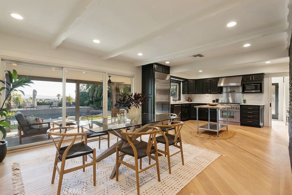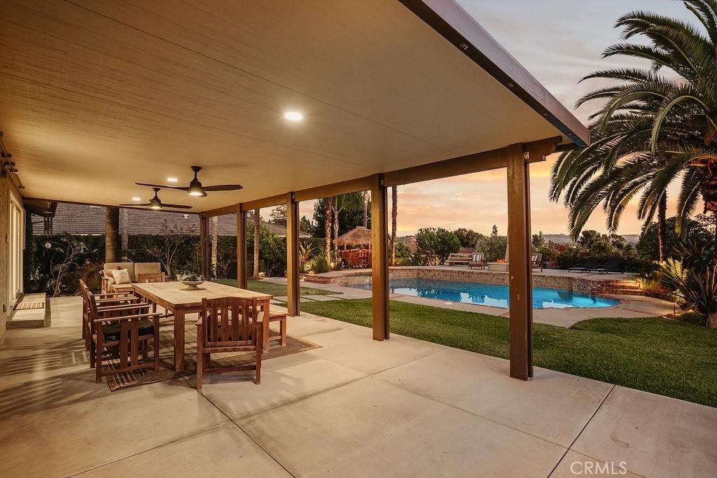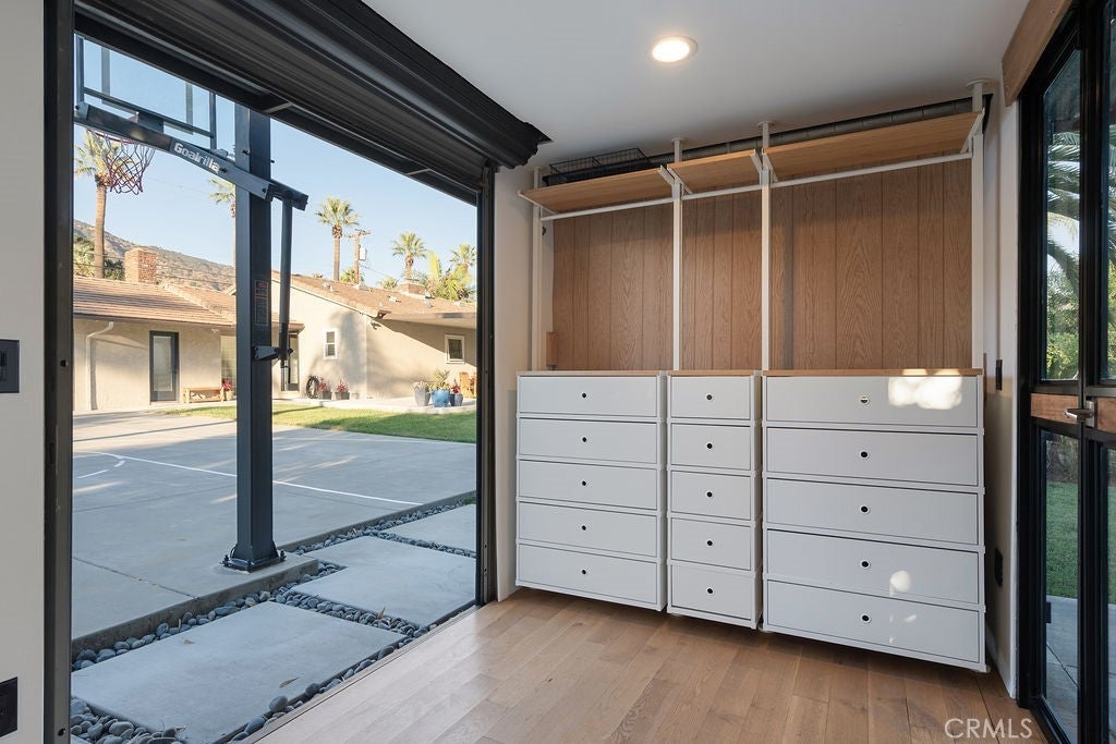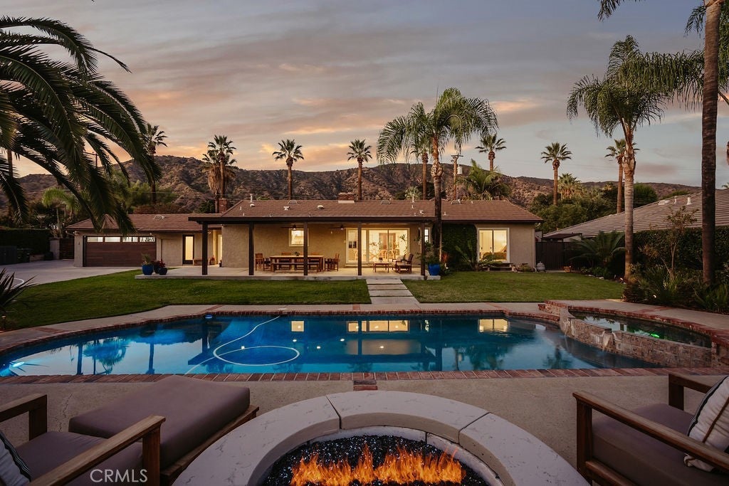Imagine waking up in North Glendora, where the morning light sneaks through the Anderson windows just right, the coffee tastes better for reasons science can’t explain, and your biggest problem is deciding which fruit tree to pick from first. Lemons? Oranges? Limes? It’s your own personal produce section — without the judgmental self-checkout line. The home itself nails that effortless California vibe. Real hardwood floors, copper plumbing that won’t throw tantrums, a newer HVAC system that actually keeps its promises, and a layout that flows smoother than your playlist on a Sunday morning. The garage has been converted into a home gym, which you’ll proudly show guests right before explaining why you haven’t had time to use it lately. Step outside and the backyard instantly becomes the main character. A sparkling pool glistens like it’s sponsored by Vitamin D, a Tiki Hut lounge offers shade for your “I’ll just sit here for five minutes” moments that somehow last three hours, and the half basketball court is perfect for settling friendly disputes. The mountain views to the north and city lights to the south remind you that life really doesn’t get much better than this. At the far end of the property sits a fully finished shipping container studio with hardwood floors, AC, built-in closet and a private deck perfect for your home office, craft room or 4th bedroom. Three storage sheds, a 20-amp RV panel, and dual LiftMaster gates round out the list of features that make you feel far more competent than you’ll ever admit. Evenings are pure magic. The air smells like citrus, string lights glow, and the city twinkles below as if auditioning to be your nightlight. Friends gather, laughter echoes off the pool water, and someone inevitably declares, “We should do this every weekend.” You nod & smile. When you do venture out, Glendora Village is just minutes away with its cafes, restaurants, and boutiques — the kind of place where everyone seems to know your name. Add in nearby hiking trails like Big Dalton Canyon, Sandburg field and track, and South Hills Park, and you’ve got the perfect mix of adventure, charm, and post-hike margaritas. This isn’t just a home — it’s a mood, a moment, and a mild flex all rolled into one. Fruit trees, pool days, mountain mornings, and that quiet satisfaction of knowing you live in one of the best pockets of Glendora. Go ahead, picture yourself here. Then stop imagining — and start unpacking.