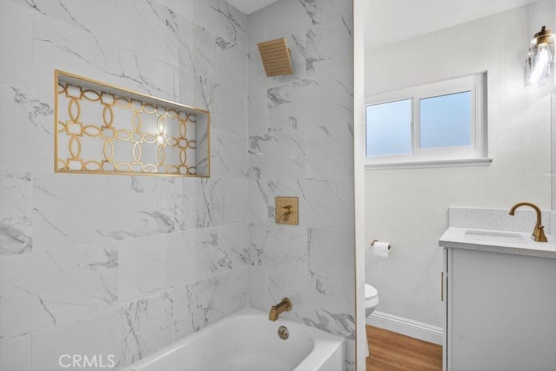 WOW, This is one of the cheapest 4 bedroom homes in the entire city of Bloomington!!!! AND IT FULLY REMODELED!!!! FHA, CONV, VA OK!! NEW ROOF AND NEW ELECTRCIAL PANEL WITH PERMITS!! This house has it all. It has NEW interior paint, NEW Exterior Paint, NEW wood laminate, NEW remodeled kitchen with NEW counter tops, NEW backsplash, NEW stainless steel stove, NEW microwave, NEW remodeled bathroom, NEW vanity cabinets, NEW irrigation system, Central AC and Heat, NEW interior texture, NEW electrical fixtures, NEW plumbing fixtures, NEW doors and moldings, New sprinkler system, AND MUCH MORE. Hurry, this one won't last long