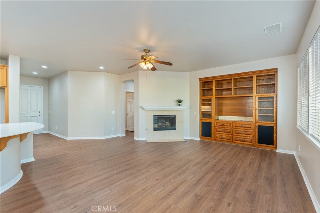 Beautiful Home in Exclusive 55+ Community. Welcome to this meticulously maintained 3-bedroom, 2-bath home offering comfort, convenience, and an active lifestyle. Enjoy 1,673 square feet of comfortable and inviting single-level living in a sought-after 55+ community. The open floor plan features a bright great room with a cozy gas fireplace, built-in entertainment center, high ceilings, and a sliding glass door that opens to a private, fully landscaped backyard. The kitchen flows seamlessly into the great room and includes built-in appliances—ideal for entertaining or everyday living. The spacious primary suite offers a private bath with dual sinks and a large walk-in closet. Recent improvements include fresh interior and exterior paint, new laminate flooring throughout, and new blinds. Enjoy outdoor living on the inviting front porch or beneath the Alumawood patio cover in the peaceful backyard. Additional highlights include recessed lights, a tile roof and an attached two-car garage. Residents enjoy resort-style amenities including a clubhouse, pool, spa, BBQ and picnic area, and community garden. Conveniently located near the Walnut Senior Center, Library, shopping, and restaurants.