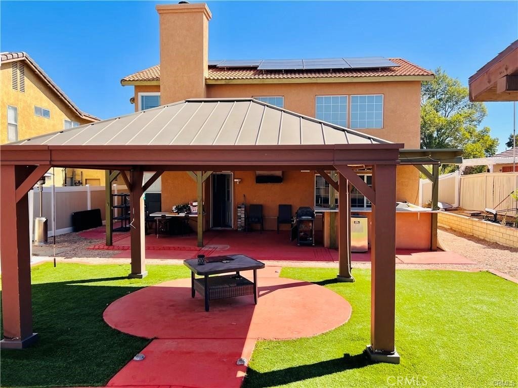 Located on a quiet street in the desirable Eagle Glen community, this beautifully maintained two-story home offers 3 bedrooms, 2.5 baths, and a versatile loft overlooking the living room. The spacious floor plan features a bright family room with a gas fireplace and laminate flooring on the main floor and master bedroom. The updated kitchen includes modern finishes and provides an ideal space for cooking and entertaining. Enjoy year-round comfort with both a swamp cooler and central air conditioning. Solar panels help reduce monthly electricity costs, adding efficiency and value. Outdoor living is a highlight with a large backyard featuring a gazebo—perfect for relaxing or entertaining guests. The low-maintenance landscaping includes decorative rock in the front yard and artificial grass in the backyard. Additional features include a two-car garage and ample storage. This inviting home combines comfort, style, and sustainability in one of Eagle Glen’s most sought-after neighborhoods.