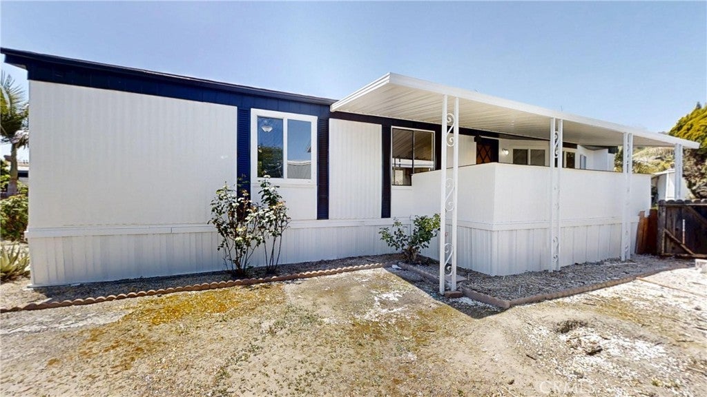 Ideal, central park location with beautiful mountain views and floral garden views! This spacious 2-bedroom, 2-bath home offers over 1,150 square feet of light-filled indoor living space. It is a hidden treasure among your mobile home options, with it's large entry porch and spacious entry and living room. The roof is nearly brand new, just replaced a little over 2 years ago. It is truly move-in ready with matching brand new GE appliances — including refrigerator, stove, washer, and dryer. You’ll love the large fully remodeled kitchen, new flooring and fresh paint throughout. Dual-pane windows all around fill the home with natural light, creating a bright and inviting atmosphere in every room. Enjoy outdoor living with a spacious, fenced yard, perfect for pets, gardening, and gathering with friends and family. When the weather is more extreme, just turn on the central air conditioning and heating. Located just minutes from Cal Poly, Mt SAC, shopping, dining, and freeway access, this home offers convenience in a well-maintained, sought-after, all ages community. Amenities are well-kept and include a large clubhouse, game room, library, barbecue area, and of course a pool and spa.