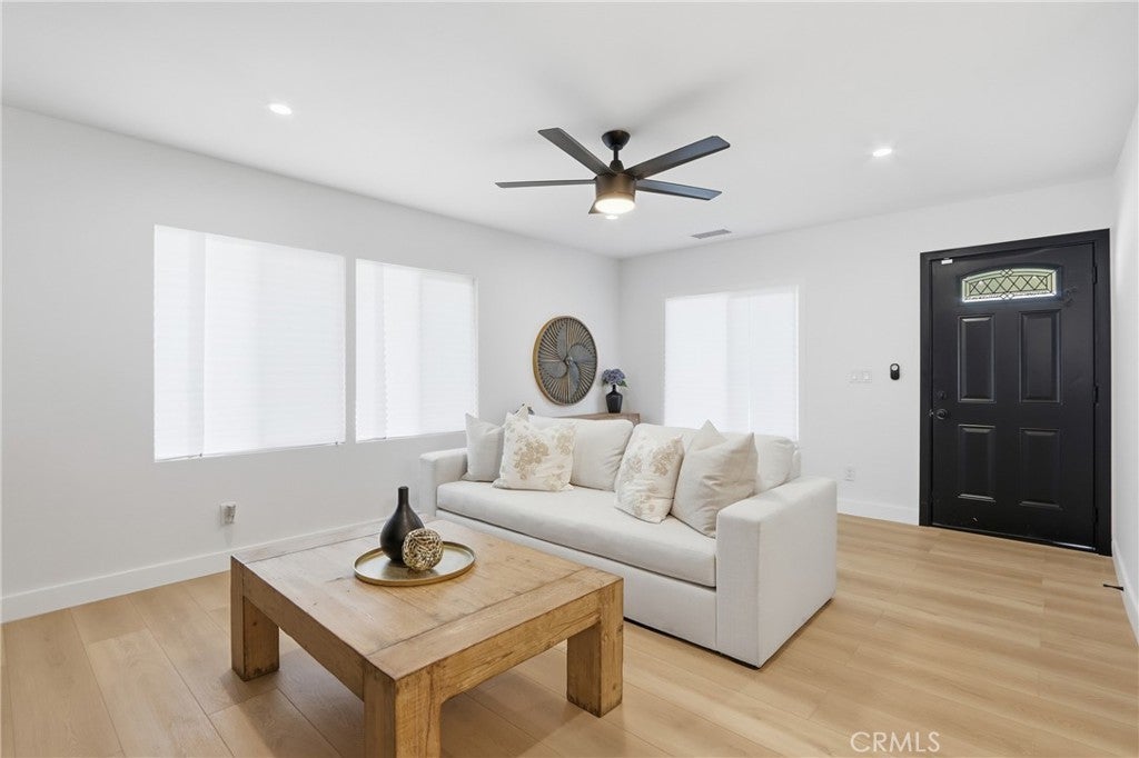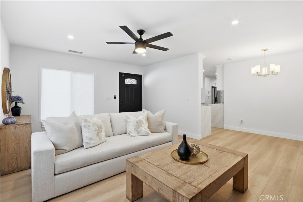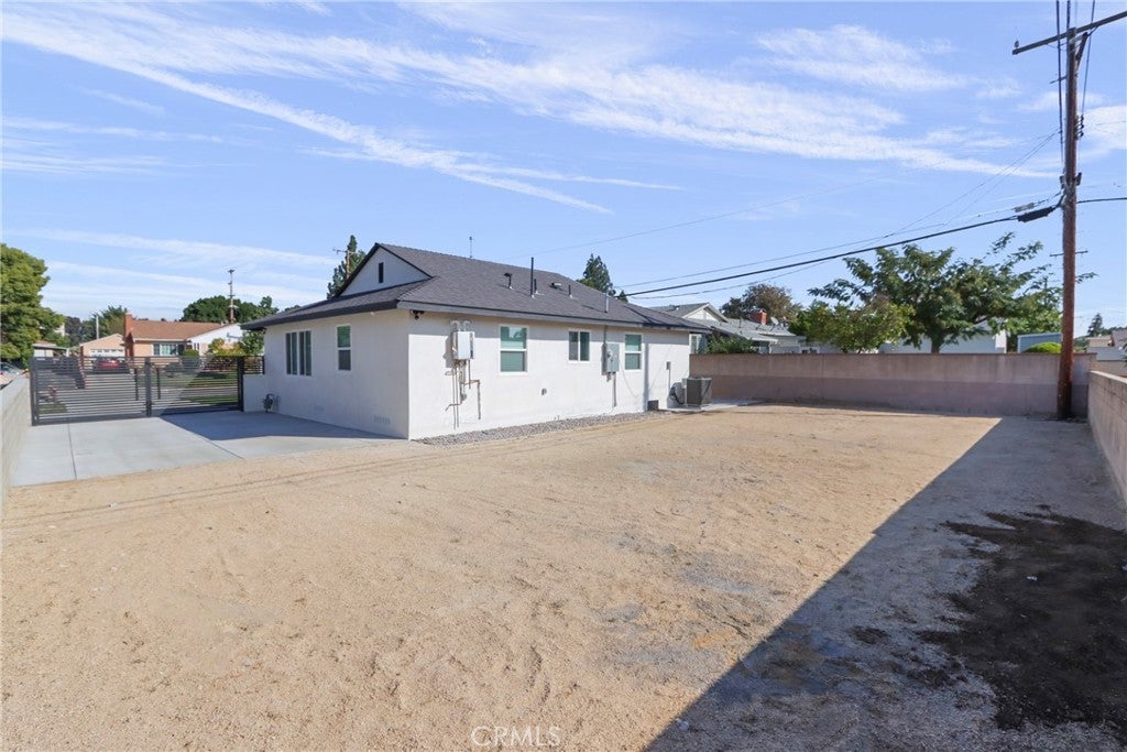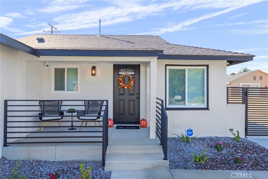 Casa Elgenia , Welcome to this beautiful highly upgraded modern home. This property was recently renovated and there are so many upgrades and unique features that were done to make this home all new and beautiful. The stucco was redone with the Santa Barbara Smooth finish. All new retrofit windows, new roof, new driving gate, RV access, new side gate and a new long driveway completed the exterior upgrades on this amazing home. The new glass garage door completes the modern look and gives this house a touch of elegance. The black front door and new metal railings totally make this home stand out and more beautiful. This three bedroom and one-and-a-half-bathroom home was completely remodeled and upgraded to meet the needs of the new owners. The smooth texture and luxury vinyl flooring makes this home more spacious and welcoming. The kitchen was redesigned to accommodate more cabinets and more countertop space. The quartz countertops are elegant and compliment the new white shaker cabinets. The kitchen has plenty of cabinets and storage space. The property has all new interior doors and exterior doors, new upgraded shower and all new lighting features and ceiling fans throughout the house. This home has video surveillance cameras and a commercial grade DVR making this home a smart ready home and it also comes with a new furnace and a new AC unit. The garage floor was painted with epoxy paint and completely done with ceiling lights and new side door. There is plenty of room for an ADU in the backyard. The grading was recently done and there is plenty of space for easy access. This is a must see!! Come and see this great house! It will not last!