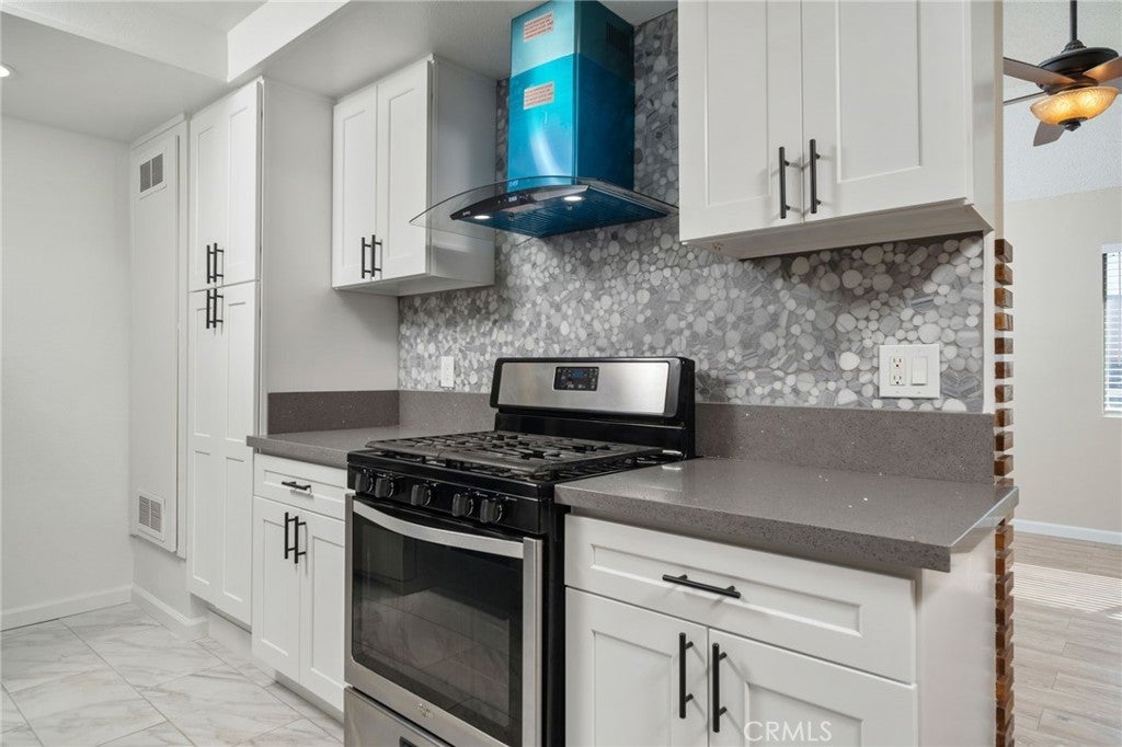 STYLISHLY UPDATED HOME IN UNIVERSITY GREENS — Just Minutes from UCR & Downtown! Step into this beautifully refreshed 3-bedroom, 2-bathroom home offering 1,119 square feet of modern comfort and thoughtful upgrades throughout. Located in the desirable University Greens community, this single-level end unit features soaring 12-foot ceilings, a large open living room, and incredible natural light from multiple exposures. The brand-new kitchen is a true showstopper, showcasing shaker-style cabinetry, stone countertops, a designer backsplash, recessed lighting, and new stainless-steel appliances—all included with the purchase. The home also features fresh interior paint, new flooring, updated light fixtures, and even new outlets and switches, creating a crisp, move-in-ready feel from top to bottom. Enjoy seamless indoor-outdoor living with a new double-pane sliding door leading to a private patio—perfect for relaxing or entertaining. Both bathrooms have been tastefully updated, and the in-home laundry area adds everyday convenience. A detached two-car garage offers plenty of parking and storage space. Community amenities include a sparkling pool, spa, and landscaped common areas, offering a resort-like setting just minutes from UC Riverside, the Mission Inn, and Downtown Riverside’s dining and shopping. Whether you’re a first-time buyer, investor, or anyone seeking a stylish, low-maintenance home in a prime Riverside location, this property delivers it all. HOA dues include water and trash!