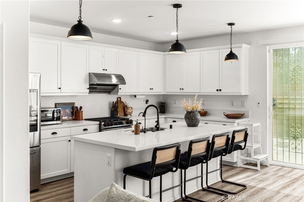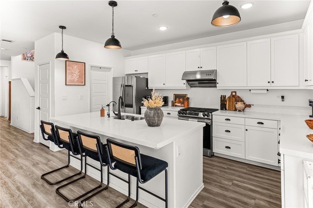 Welcome to 872 Bluebell Way in Beaumont, a beautifully maintained turnkey home offering 4 bedrooms and 3 bathrooms across 2,115 square feet of comfortable living space. Step inside to discover a thoughtfully designed layout with generous bedroom sizes throughout—each room is larger than the standard 10x10, ensuring ample space for family and guests. The floor plan includes one bedroom and a full bath downstairs, perfect for visitors or a home office, while three bedrooms, including the spacious primary suite, are upstairs. The heart of the home is a large kitchen featuring sleek, modern finishes, abundant cabinetry, and an open flow into the adjacent dining room. Pendant and recessed lighting create a bright and welcoming atmosphere, making it a perfect space for both cooking and entertaining. Throughout the home, recessed lighting ensures every space feels vibrant and inviting. Step outside to a charming backyard of approximately 250 square feet, ideal for relaxing or entertaining. The upstairs primary bedroom offers a comfortable retreat with an en-suite bathroom that provides ample space and privacy. Additional highlights include an attached garage with ample storage and solar panels to help you save on energy costs and live sustainably. With a dedicated dining area, ample storage, and modern turnkey condition, this home is ready for you to move in and enjoy from day one. Blending comfort, style, and convenience in a desirable Beaumont neighborhood, 872 Bluebell Way is a unique opportunity you won’t want to miss. Schedule your private tour today!