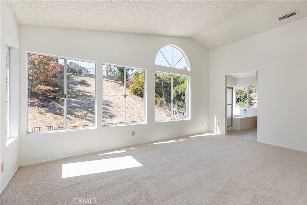 Ceiling Fan(s), Cathedral Ceiling(s), Granite Counters, High Ceilings, Recessed Lighting, Unfurnished, Bedroom on Main Level