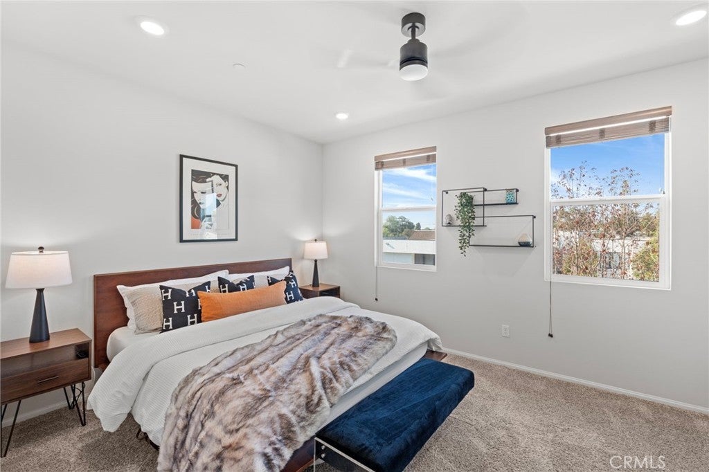 Welcome to this bright and airy, FHA approved, turnkey West Cameron townhome. Built in 2023, this beautifully maintained tri-level, prewired google hub home, perfectly combines elegance, comfort, and efficiency. Enter through the private front patio or the attached two car garage into a flexible bonus space ideal for an office, workout space, or secondary living area. Travel to the second floor and immediately notice the abundance of natural light as you step into a beautifully designed open concept layout with a gourmet kitchen featuring quartz counters and stainless steel appliances and a dining and living space with a private balcony. This floor also provides a small flexible bonus space and one bedroom and one bathroom ideal for guests. On the third floor you will find a large primary bedroom with private en suite featuring a dual sink vanity and walk in closet. The third floor also boasts a convenient and spacious indoor laundry room and a secondary primary bedroom with a private en suite. Enjoy the luxury of a dual zone central ac system and the peace of mind of a prewired ADT security system. Equipped with a Tesla EV charger, tankless water heater, and paid off solar panels for lasting energy efficiency and situated in a prime location just minutes from shopping, dining, and freeway access this home is a must see.
