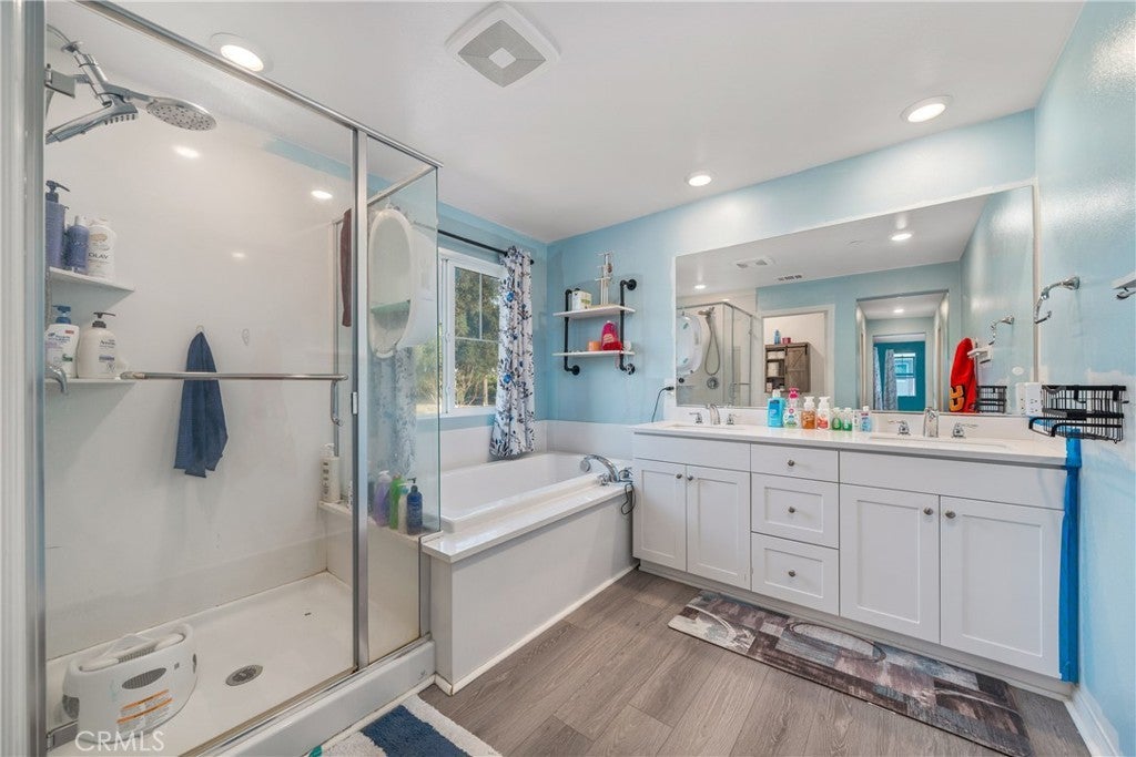 Welcome to a home designed for real life. Built in 2022, this home offers nearly 2,900 sqft of thoughtfully designed living space with a rare multi-gen layout that provides flexibility, privacy, and long term value. The heart of the home is the bright, open concept kitchen, dining, and living area. This space is perfect for everyday living and easy entertaining. Large windows and clean modern finishes make the space feel airy, warm, and inviting. One of the most unique features is the private downstairs multi-gen suite with its own entrance, living space, and kitchenette. Whether you’re accommodating extended family, creating a private guest space, setting up a home office, or exploring rental potential, this layout offers options that most homes simply don’t. Upstairs, you’ll find a spacious loft ideal for a media room, play area, or second living space, along with generously sized bedrooms. The primary suite is a true retreat, featuring two walk-in closets and a spa like bathroom designed for comfort and relaxation. Additional highlights include paid off solar for energy savings, a low maintenance yard, and access to a community park and playground. This home isn’t just beautiful, it’s functional, flexible, and built for the way people live today.