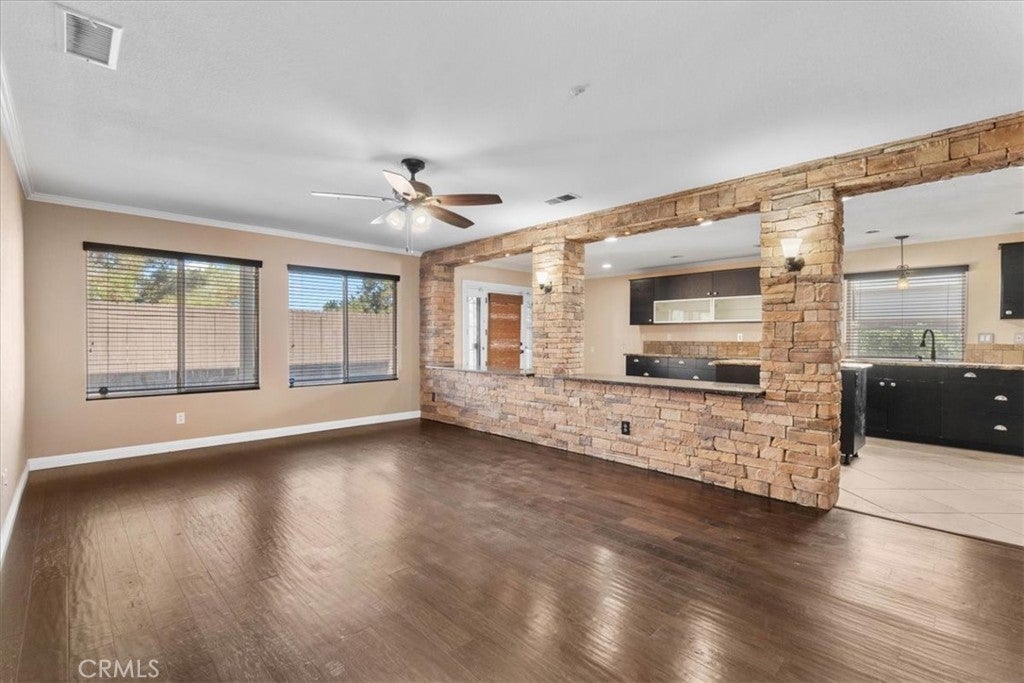 Now available! This two-story home is located in Country Club Estates in Fontana on a quiet cul-de-sac. The first floor features a living room, a formal dining room, and a family room. The remodeled kitchen includes granite countertops, stone-accented interior walls, a walk-in pantry, and a breakfast nook. A downstairs bedroom with access to the hall bath offers an ideal space for guests or extended family. The second floor includes a bonus/game room, a primary bedroom with an en suite bathroom and walk-in closet, three additional bedrooms, and a hall bath. Interior improvements include wood-plank composite flooring, crown molding, ceiling fans, recessed lighting, and remodeled bathrooms. Exterior highlights include a covered front porch, pool, covered patio with deck, and exterior lighting. Located off Sierra Ave., this home offers excellent access to the 10 and 60 freeways, major employment hubs, Ontario International Airport, and Kaiser Permanente Fontana Medical Center. No HOA Dues! See for yourself!