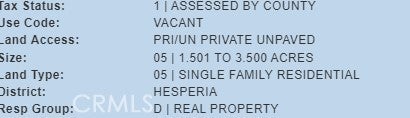 Barstow Land For Sale - Almost 3 ACRES!. Surveyed in 2016. Close to Barstow Community College. Close to the 15 FWY. In the Best area of Barstow referred to as Barstow Heights! Many Beautiful homes in this area. Utilities available nearby. Build your dream home or manufactured. Mountain views and parts leveled. This Land is accessed by the County which means a lot more possibilities. The adjacent parcel is also available. Check APN 0182321290000.
