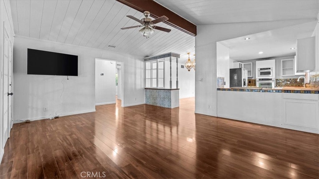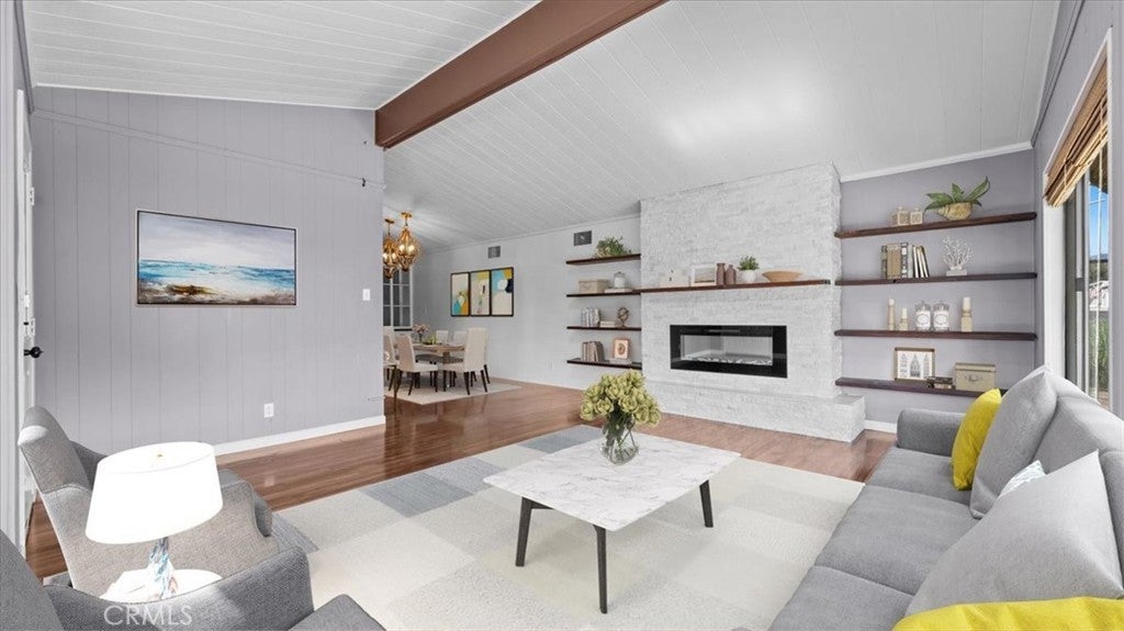 Step into a modern retreat thoughtfully designed for the way you live today. This tastefully updated ranch-style residence offers approximately 1,700 square feet of single-level living space, featuring two generous bedrooms and two pristine bathrooms. Enter into a luminous living room anchored by an electric fireplace and sleek floating shelves, a stylish yet inviting space for both relaxation and entertaining. Vaulted ceilings with exposed beam details draw the eye upward, while rich luxury vinyl flooring flows seamlessly throughout, uniting the interiors with quiet elegance. The open-concept chef’s kitchen dazzles with stainless appliances, clean-lined cabinetry, and ample counter space, ready for weekday meals, weekend gatherings, or elevated casual entertaining. Just steps away lies a spacious family room whose flexible layout invites movie nights, an at-home office, or simply comfortable family downtime. Both bedrooms offer thoughtfully proportioned comfort and closet space, while the remodeled baths deliver contemporary luxury with refined finishes and timeless appeal. Slide through to your entertainer's patio and discover a backyard sanctuary primed for alfresco brunches, starlit cocktails, or quiet morning coffee with your favorite companion. A two-car attached garage with direct access means that every day is effortless. Situated in a highly desirable foothill enclave of Upland, this home offers unmistakable lifestyle perks. Trails for walking, running, or biking are right at your fingertips via the nearby Pacific Electric Trail, a well-established paved route that links neighborhoods and nature. Historic downtown Upland is just minutes away, offering a vibrant mix of locally owned boutiques, casual cafés, and fine dining options perfect for spontaneous evenings out or Sunday brunch with friends. Commuters will appreciate access to the 10 and 210 freeways, as well as nearby Metrolink service. This home is located within the respected Upland Unified School District, which offers award-winning programs in STEM, the arts, wellness, and dual-language immersion. Whether you’re hosting friends, enjoying the California sun, or simply unwinding in style, this residence brings together modern living, comfortable design, and a premium Upland address. All the essentials are here: beautiful interiors, outdoor living, garage parking, and a location that offers both tranquility and convenience. This home has it all, don't wait!