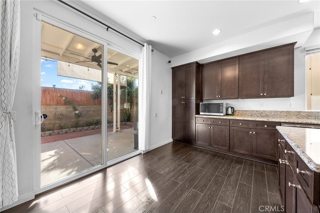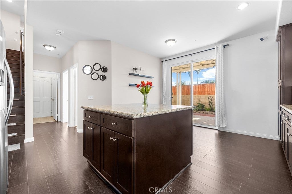 Beautiful 2017 newer-built home located on a quiet cul-de-sac with mountain views. This meticulously maintained property offers a bright, open floor plan with 4 bedrooms and 3 full bathrooms, including 1 bedroom and 1 full bathroom on the main floor, plus a spacious upstairs loft. Features include waterproof laminate flooring, recessed LED lighting, high ceilings, and a great room with a beautifully designed tile fireplace connected to the formal dining area. The kitchen offers a large center island, granite countertops, wood cabinetry, and built-in stainless-steel appliances. The upstairs primary suite includes a generous walk-in closet and dual sinks. Two additional bedrooms and a full bathroom complete the second level. The home also includes a tankless water heater, security camera system, and ample storage. Additional highlights include solar panels with an assumable lease and a super-capacity EV charging system, perfect for modern electric vehicles. The yards are landscaped with flowers and fruit trees. The stone-enclosed backyard feels larger than the recorded lot size, offers privacy, and is ideal for entertaining. There is also a convenient outdoor Asian-style kitchen, perfect for cooking with strong aromas or hosting outdoor gatherings. Two-car attached garage with direct access. The HOA fee is $131 per month and has remained unchanged for years. It includes front yard maintenance. This house is conveniently located near parks, schools, shopping, dining, and major freeways. Move-in ready—priced to sell quickly!