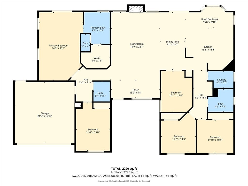Breakfast Area, Block Walls, Separate/Formal Dining Room, High Ceilings, Open Floorplan, Recessed Lighting, All Bedrooms Down, Bedroom on Main Level, Main Level Primary, Primary Suite