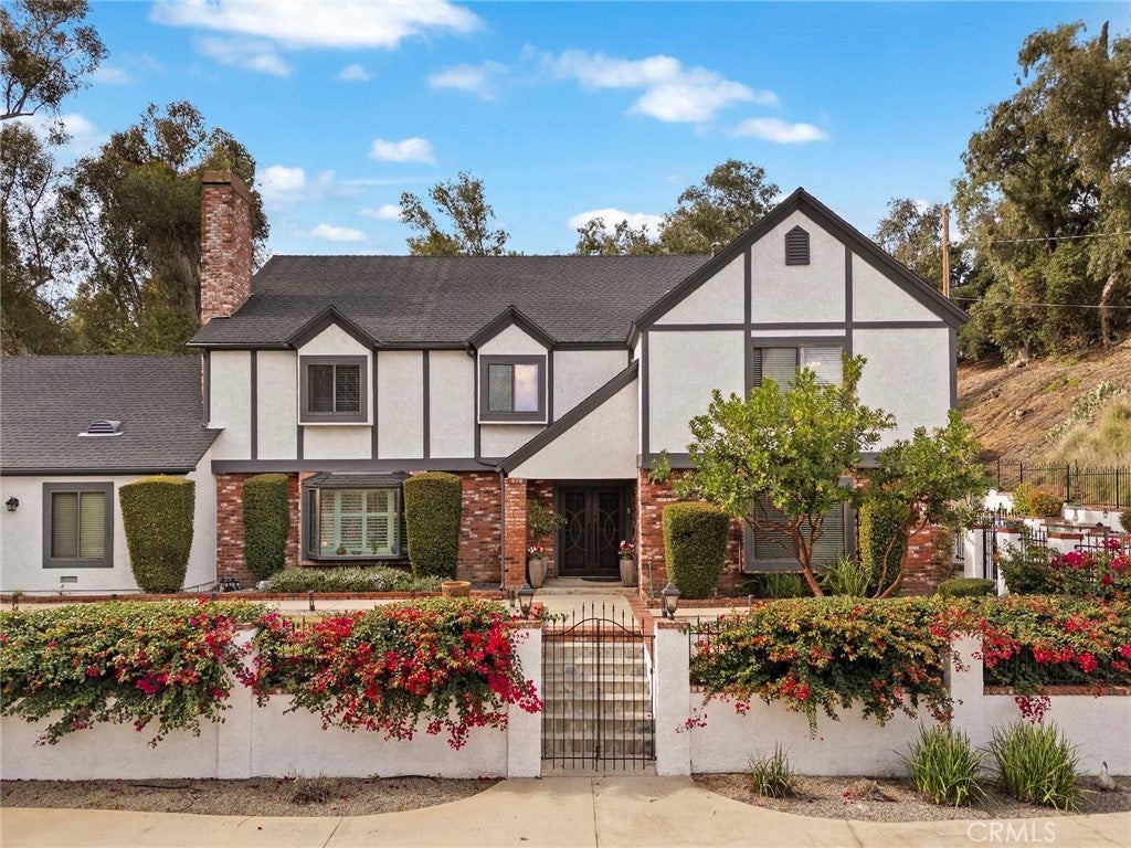 SERENE & SECLUDED NESTLED IN THE HILLS OF LIVE OAK CANYON & NEIGHBORING WEBB CANYON, IS THIS STUNNING CUSTOM-BUILT TWO-STORY ENGLISH TUDOR HOME SITUATED ON A LARGE LOT, 14,721 SQ FT. WITH 3744 SQFT OF LIVING SPACE. PRIVACY ABOUNDS! NEW EXQUISITE DOUBLE METAL FRONT DOORS WELCOME YOU. THIS HOME HAS BEEN PROFESSIONALLY DECORATED WITH STYLE. THE KITCHEN HAS WHITE QUARTZ COUNTERS, DOUBLE OVENS, TRASH COMPACTOR & STAINLESS-STEEL APPLIANCES WITH AN EATING BAR PLUS ROOM TO DINE. THE FORMAL DINING ROOM IS OFF THE KITCHEN AND IS CURRENTLY BEING USED AS AN EXERCISE ROOM. THE ENTIRE FRONT OF THE HOUSE HAS BEAUTIFUL ETCHED DIAMOND PATTERN WINDOWS. THE LIVING ROOM HAS A FIREPLACE & A CORNER BAR. THE FAMILY ROOM HAS FRENCHDOORS THAT OPEN TO THE BACK YARD, CURRENTLY STAGED AS A THEATER ROOM. A BEDROOM/OFFICE IS ON THE FIRST FLOOR, NEXT TO A REMODELED 3/4 BATHROOM. THE PRIMARY SUITE IS MAGNIFICENT WITH A SEATING AREA & A FIREPLACE. YOU WILL BE DAZZLED WITH THE LARGE WALK IN CLOSET & EXQUISITE BATHROOM WITH A WALKIN SHOWER WITH DUAL SHOWER HEADS & A SPA BATHTUB.THERE IS ANOTHER MASTER BEDROOM WITH ITS OWN REMODELED BATH PLUS ADDITIONAL 2 MORE LARGE SIZE BEDROOMS WITH NEW CARPET. ENJOY A SPARKLING, REFINISHED POOL & SPA IN THE PRIVATE BACKYARD, WITH A LARGE COVERED PATIO WITH A BUILT IN FIRE PIT, ISLAND WITH NATURAL GAS BBQ FOR ENTERTAINING. THERE IS A SEPARATE GUEST QUARTERS WITH A 3/4 BATHROOM & FINISHED LOFT. THE LAUNDRY ROOM IS OFF THE 3 CAR GARAGE WHICH HAS NEWER GARAGE DOORS & AUTOMATIC OPENERS. THERE IS A PULL-DOWN LADDER FOR ADDITIONAL STORAGE. ROOM TO PARK MULTIPLE CARS (AT LEAST 5, PLUS RV PARKING) IN THE DRIVEWAY. THIS HOME IS SITUATED AMONGST MID-CENTURY MASTERPIECES BY FOSTER RHODES JACKSON (Apprentice of Frank Lloyd Wright). CHOICE OF CLAREMONT OR LA VERNE SCHOOL DIST. CLOSE TO CLAREMONT COLLEGES & UNIVERSITY OF LA VERNE. TURNKEY!
