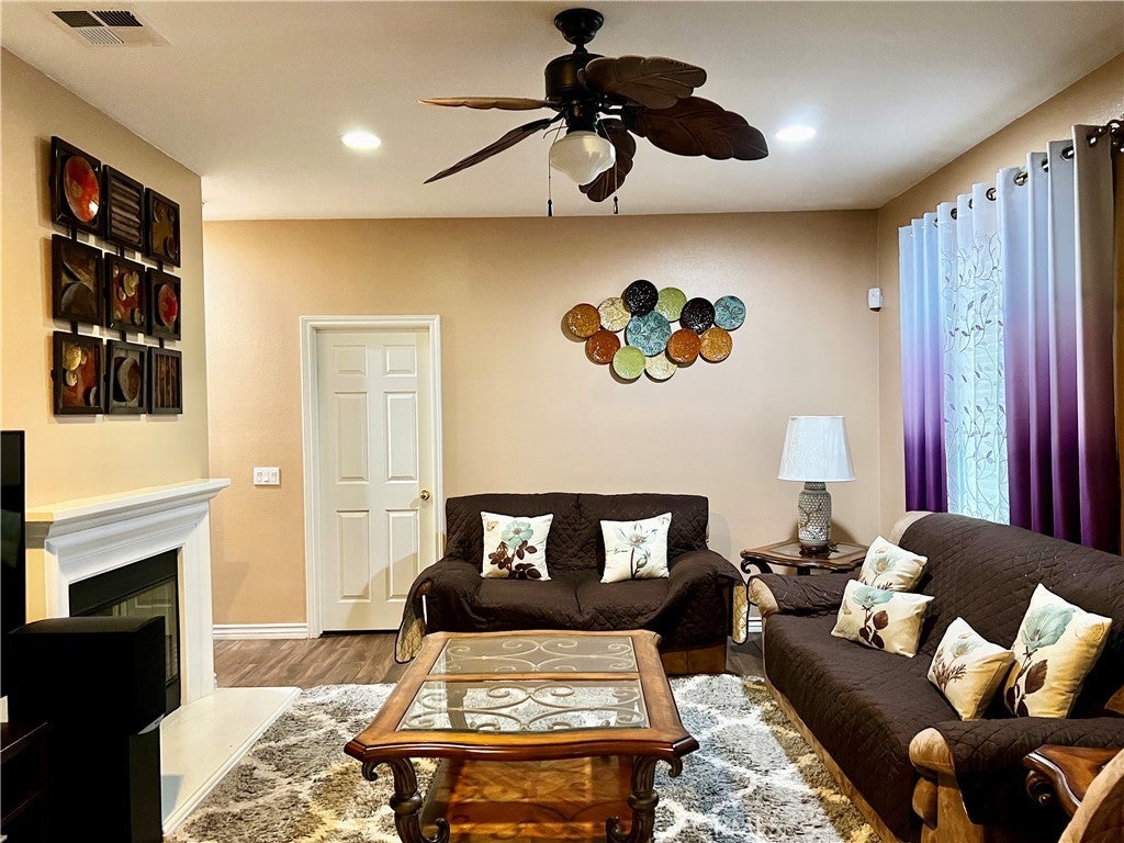 Welcome to this beautiful 4-bedroom, 3-bathroom home offering 2,520 sq. ft. of comfortable living space. From the moment you enter, you’ll be greeted by a bright living room with vaulted ceilings, creating an open and airy ambiance. The first level features wood-look tile flooring throughout, combining durability with warm, stylish appeal. Enjoy a separate family room with a cozy fireplace, and a well-appointed kitchen with a center island, granite countertops, and plenty of cabinet space—perfect for cooking and entertaining. A convenient downstairs bedroom provides flexibility for guests or multi-generational living. Upstairs, you'll find a spacious loft, ideal for a home office, playroom, or media space, along with a laundry room for added convenience. The primary suite offers a relaxing retreat with ample space and comfort. Step outside to a beautifully landscaped backyard featuring a covered patio, ideal for outdoor dining and gatherings. The property includes a 2-car garage with a long driveway, plus overhead storage racks and cabinets for maximum organization. Additional upgrades include a whole-house water softener and water filtration system, providing clean, quality water throughout the home. Located close to parks, shopping, and schools, this home offers the perfect blend of comfort, convenience, and modern living—ready for its next owner to move right in.