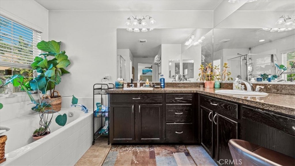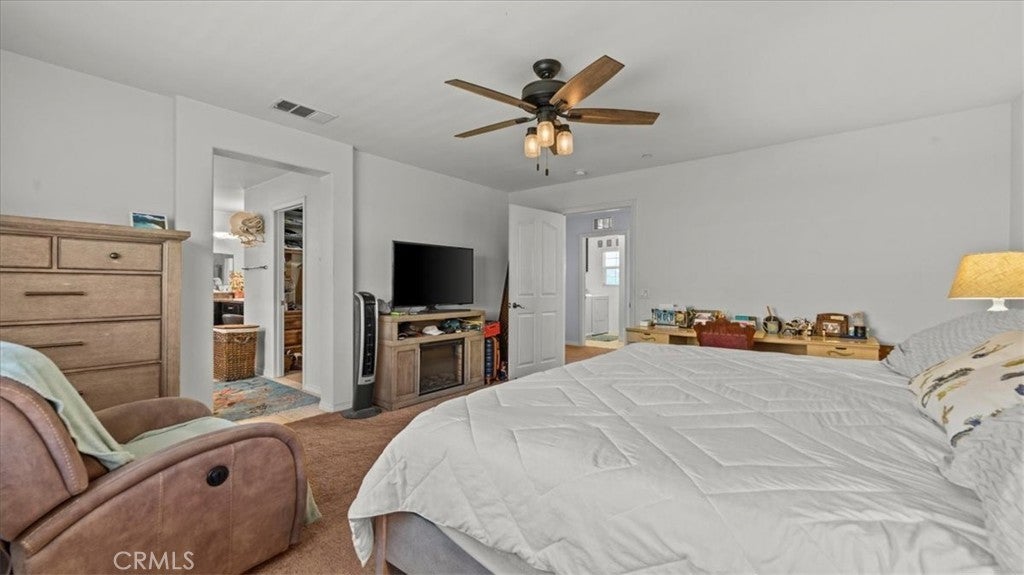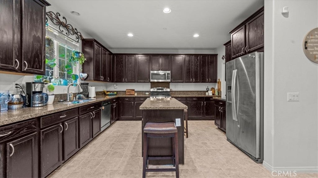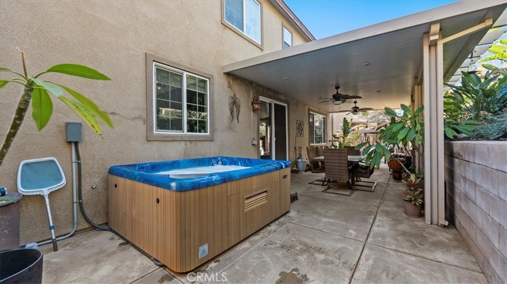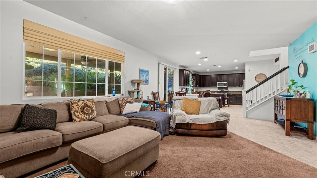 Beautifully upgraded 4-bedroom, 3-bath home offering spacious living and thoughtful design. This well-maintained property features a full convenient downstairs bedroom and a full bath, perfect for guests or multigenerational living. The main level includes a large living room and dining area, along with an expansive family room that flows seamlessly into the oversized, upgraded kitchen—complete with abundant counter space, cabinetry, and an open area ideal for everyday dining. Upstairs you’ll find three additional bedrooms, including a generous primary suite with a large bathroom and walk-in closet. The home also features a three-car garage with tandem parking and convenient mounted storage racks. Outdoor features include a covered patio, jacuzzi (included with the home), RV parking, and lush landscaping that enhances curb appeal. Additional upgrades include 28 solar panels, a new 50-gallon gas water heater, and Nest alarm compatibility ready for activation. Located in a community with desirable HOA amenities include two pools, splash pool for children to enjoy, a clubhouse, picnic area, and gym/exercise room and a park This is a must-see home!