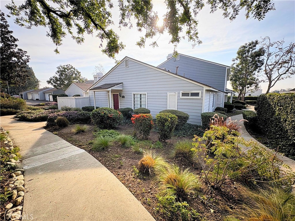 SINGLE-STORY END UNIT with attached 2-car garage, private patio, and access to the community pool and spa, all surrounded by beautifully maintained landscaping. Interior features include fresh paint, large naturally bright bedrooms, each with its own walk-in closet, and inside washer/dryer hookups. The primary suite offers an en-suite bathroom with a dual-sink vanity. The living room opens to the dining area, and the kitchen includes a breakfast bar and generous cabinet space. The private patio provides ample space for relaxing or entertaining. Rent includes trash service and association dues, including pool access.