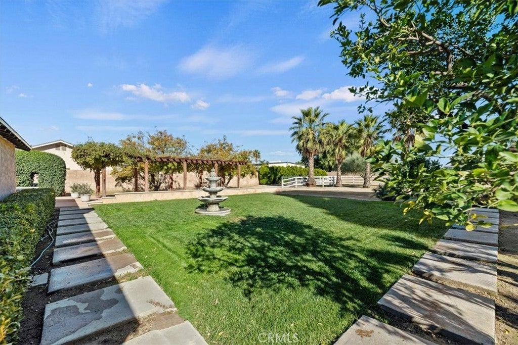 Welcome to this charming 1,396 sq ft, SINGLE STORY, 3-BEDROOM, 2-BATH home with a versatile BONUS ROOM, ideally situated on a spacious .48-ACRE HORSE PROPERTY in the desirable Sky Country community of Mira Loma. The kitchen features GRANITE COUNTERTOPS, and a WOOD BURNING/GAS BRICKED FIREPLACE creates a warm, inviting focal point in the living room. The beautifully LANDSCAPED FRONT YARD welcomes you home, while the expansive backyard is perfect for relaxing or entertaining with a lush grass area, tranquil fountain, and a pergola draped in wisteria. With ample room for RV PARKING, and room to add stables, a pool, or other outdoor amenities. This property offers endless potentials and the best of rural living with suburban convenience.