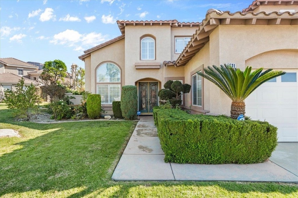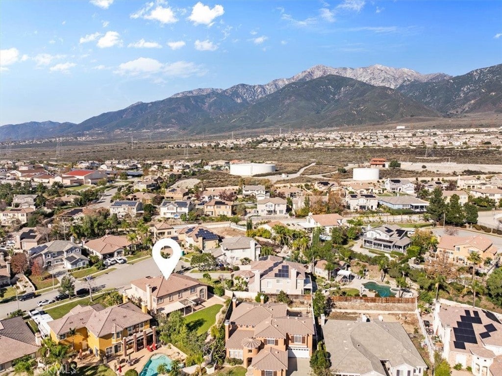 Now available in an award-winning school district, this two-story home offers a great opportunity for the new owner to refresh and make it their own. The first level features an inviting entrance that leads into the living and family rooms with vaulted ceilings. The kitchen includes granite countertops, a center island, ample cabinetry, and a breakfast nook that opens to the family room—perfect for entertaining. Also on the main floor is an office/den, a half bath, and a downstairs bedroom with its own private bathroom, ideal for an extended family member or guest. The second level offers a spacious loft/bonus room perfect for a gaming or media area, a primary bedroom with a large en suite bathroom featuring dual vanities, a makeup counter, a separate shower and tub, and a walk-in closet. Two additional bedrooms and a full bath are also located upstairs. Situated on a cul-de-sac for added privacy, this home offers views of the mountains and valley, along with a large backyard and a covered patio. Conveniently located near the 210 Freeway, the outdoor Victoria Gardens mall, Ontario International Airport, and major employment hubs, this home presents a prime opportunity in a highly desirable area.