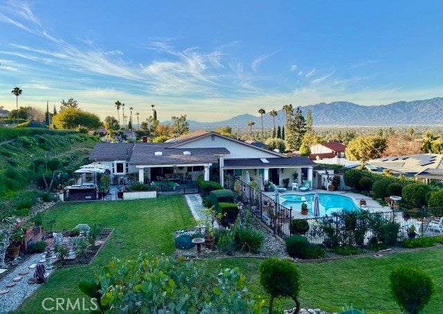 DREAMS DO COME TRUE!!! TOTALLY SECLUDED AND PRIVATE BACKYARD ... this is an ENTERTAINERS DREAM come true!! From the GAZEBO enjoy the CITY/MOUNTAIN VIEWS to your North or overlook the GORGEOUS LANDSCAPED GROUNDS .... CACTUS /ROSE GARDENS, potted plants and various fruit trees. FENCED IN POOL/SPA off master bed w/access to .75 bath. LARGE FULLY COVERED PATIO w/BUILT IN BBQ, STOVE & FRIDGE. Seller has hosted weddings and many large gatherings here. PLENTY OF ROOM... for an *ADU, *TINY HOME, *or 2nd STORY?? Home has been UPDATED THROUGH THE YEARS w/top of the line APPLIANCES in FULLY REMODELED KITCHEN with EXTENSIVE TILE WORK in both bathrooms, GRANITE COUNTERTOPS/ceramic tile, skylights, recessed lighting, crown molding, plantation shutters, dual pane windows and ceiling fans. If you want to wake up in the morning, sip your coffee and eat breakfast ADMIRING the BEAUTY OF NATURE this ones for you!! DON'T MISS THIS DIAMOND!!!