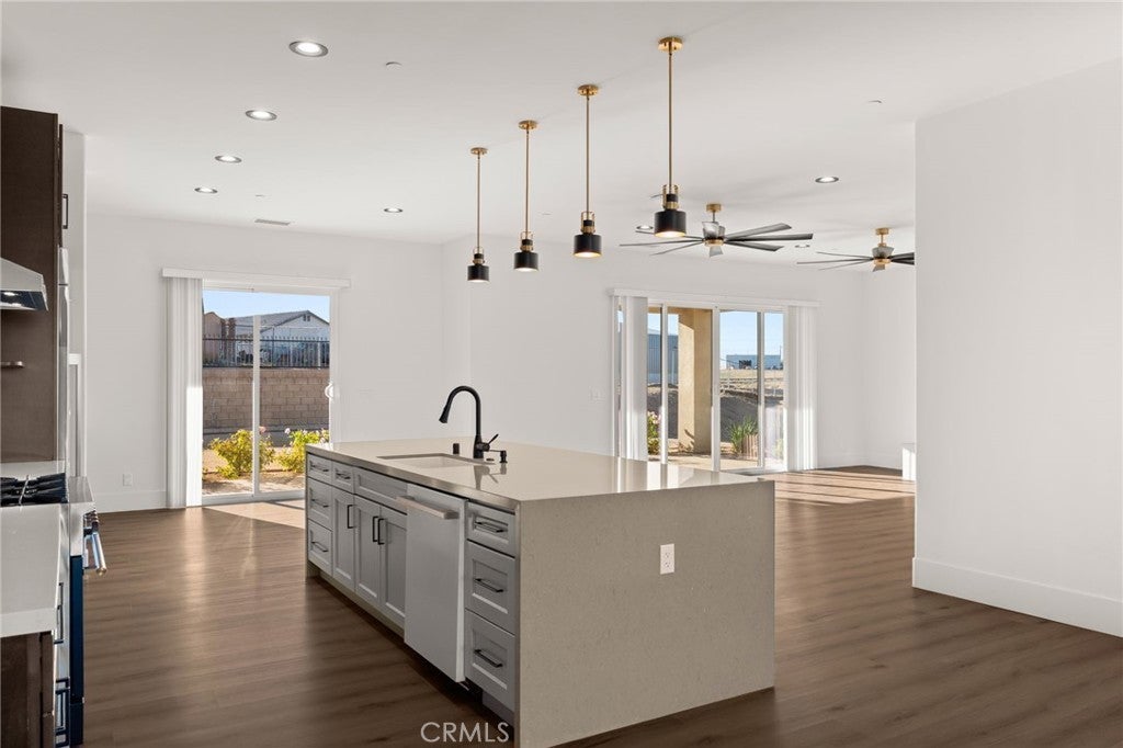 From the moment you enter, this custom home welcomes you with high ceilings, upgraded lighting, and spacious open living areas designed for comfort and style. The kitchen features a waterfall quartz island, designer fixtures, floor-to-ceiling cabinetry, a pot filler, custom stone accents, and soft-close storage throughout—perfect for everyday living and entertaining. The bedrooms are thoughtfully designed with premium flooring, elevated outlets for mounted TVs, and upgraded window treatments, while the bathrooms offer frameless glass showers, stone finishes, and a luxurious Jacuzzi tub in the primary suite. A large pantry and a well-appointed laundry room add convenience and functionality. Outside, the home sits on over an acre with gated entries, drive-through garage access, top-cast concrete hardscape, full landscaping with automatic sprinklers, and plenty of room for toys and equipment! Solar power, dual HVAC, and an oversized water heater with recirculation ensure comfort and efficiency throughout, completing a home that truly feels custom from beginning to end! Come check it out today!