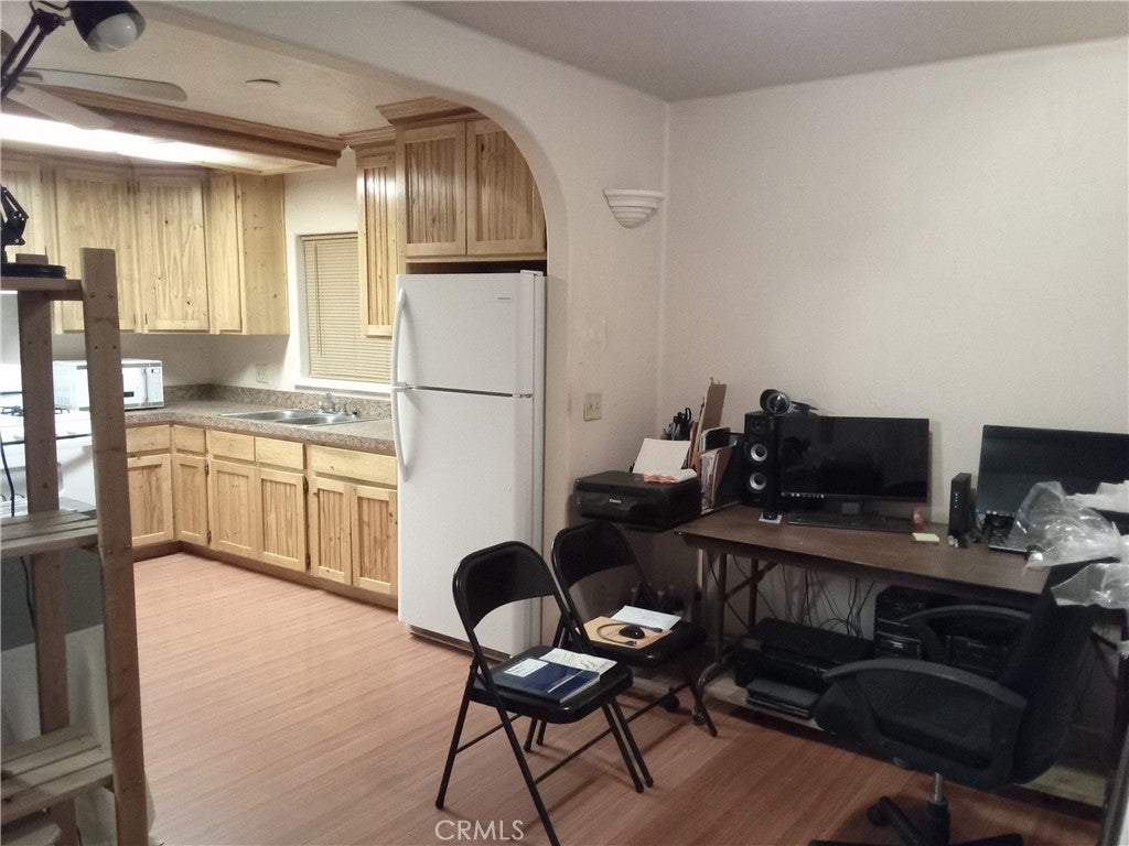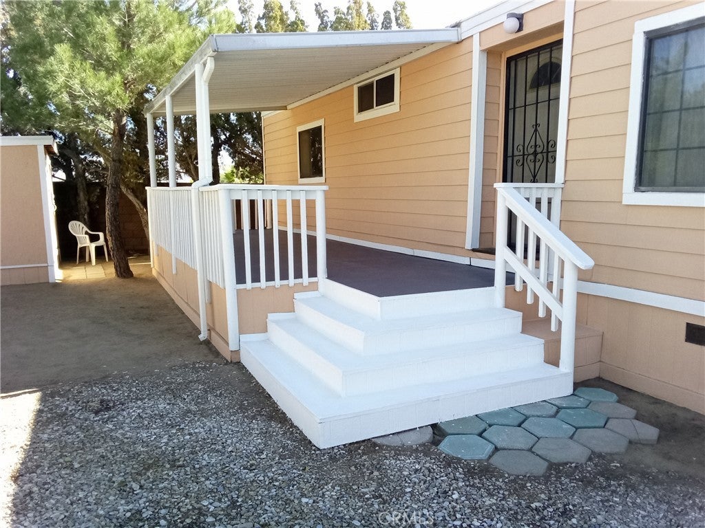 Welcome to AV Ranchos Mobile Home Park, This uniquely crafted 2 bedroom 2 bath home was renovated & improved by a master carpenter, as you walk up the Large 249SF. Covered deck (freshly sealed/ painted) inside you have Spanish-Style arched and round Textured walls! Roomy Kitchen with a dining area, Living room with a Pot-belly stove! Plus inside laundry room, Dual pane grid windows. also includes the matching storage Shed, since this is a corner lot the unit has no adjacent neighbors! Just drive right in your 2 car parking spots! Nice area, close to Schools, shopping and parks, and a low space rent*