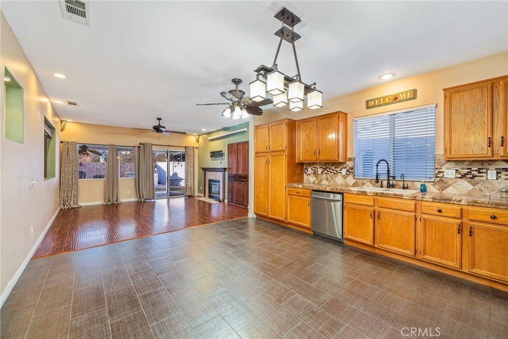 Prime San Bernardino location – minutes to Loma Linda University Medical Center, Loma Linda VA, and the rapidly growing Redlands dining, shopping & entertainment corridor (Citrus Plaza, Packing House District & all the new hotspots along Redlands Blvd).Pride of ownership is evident in this meticulously maintained single-story home featuring fresh interior/exterior paint and covered patios front and rear. Durable laminate flooring flows through the formal living and dining rooms, accented by a built-in recessed niche ideal for media or display.The bright, open kitchen showcases custom tile flooring, full tile backsplash, and connects seamlessly to the expansive great room with dual ceiling fans, a striking custom light fixture, three stylish display niches, and abundant built-in cabinetry for seamless organization.Hallway with built-in desk and extra storage leads to a flexible front bedroom currently opened to the great room – perfect as a den, office, craft room, or easily enclosed for a true fourth bedroom. Both bathrooms tastefully updated with custom vanities and sinks. Spacious primary suite includes laminate flooring, ceiling fan, plantation shutters, and direct slider to the backyard.Private backyard offers block walls, new vinyl side fencing, built-in BBQ island with its own covered patio, and full-length Alumawood patio cover over a generous concrete entertaining pad. Upgrades include a new whole-house water softener & filtration system plus owned solar (average electric bill only $67/month.) Turnkey, energy-efficient, and ideally located near premier medical facilities and the area’s hottest new amenities – this home checks every box. Schedule your private tour today!