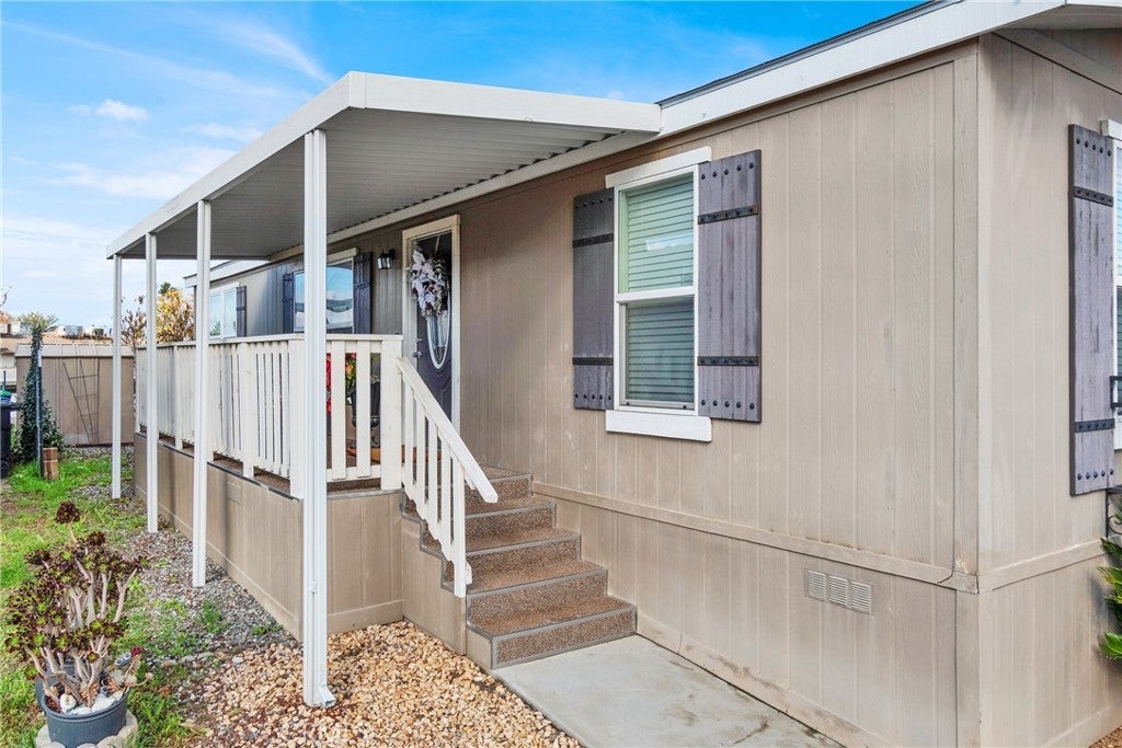 Welcome to this beautifully maintained 3 bedroom, 2 bathroom manufactured home built in 2017, offering a bright open floor plan and modern upgrades throughout. Step inside to enjoy an updated kitchen, refreshed bathrooms, and a cozy electric fireplace that creates the perfect gathering space for family and friends. Large windows with horizontal blinds allow plenty of natural light to flow through the home, enhancing its warm and inviting atmosphere. The exterior features a spacious covered porch, steps with a clean white railing, and a long covered carport for convenient parking and everyday ease. This home sits in a quiet and well-kept community just minutes from Loma Linda University, making it an excellent option for medical professionals, students, and anyone seeking comfort and convenience. Known for its world-class hospital and Blue Zone designation, Loma Linda offers a unique health-focused environment, peaceful neighborhoods, and easy access to shopping, dining, and major freeways. Move-in ready and thoughtfully cared for, this home blends modern living with one of the most desirable locations in the Inland Empire. Don’t miss your opportunity to make it yours.