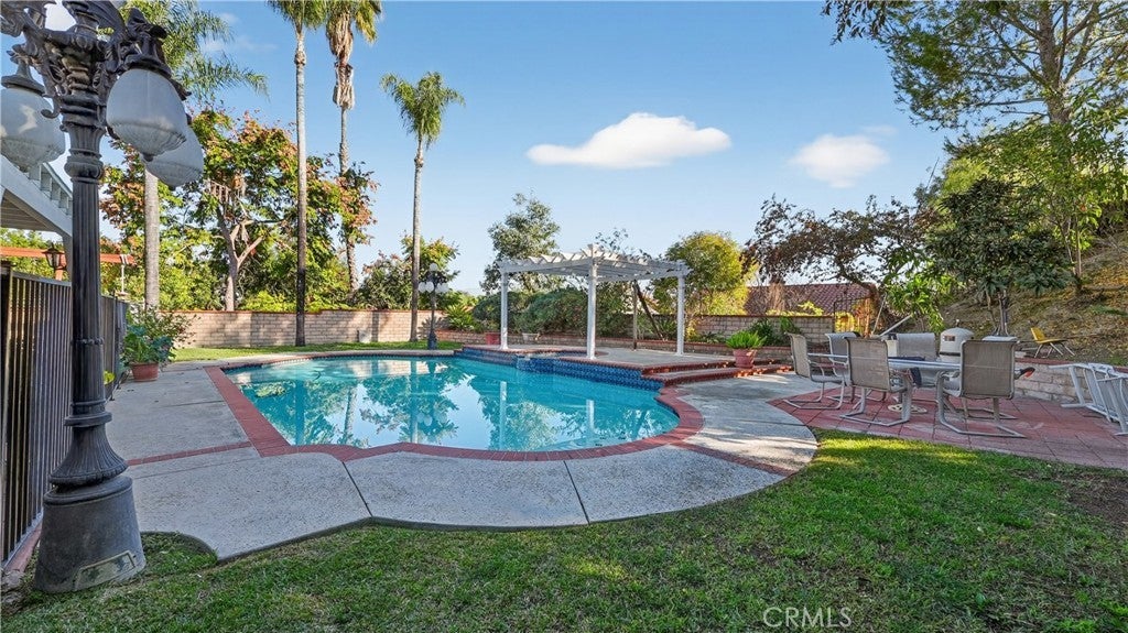 Welcome to this beautiful 2 story home nestled in one of Rowland heights most desirable neighborhoods. Offering 4 spacious bedrooms and 3 full baths with an additional play room or gym room home has vaulted ceilings. This home is a perfect blend of comfort, functionality and entertainment. The back yard has a jacuzzi and pool already has security gates. Backyard also boast 2 covered patios with relaxing palm trees and several mature fruit trees on the sides of the house. All this sits on an over 15K sq ft lot. Down stairs has the living room, family room with fireplace, formal dining room and 1 bedroom and 1 full bath. Upstairs has 3 bedrooms and 2 full baths, the master has a sunk in tub and his and her closets. Garage has lots of cabinets for storage. Home has only had 1 owner and she has done some upgrades. Tankless water heater and retrofit Windows. Plumbing and pool were re done about 8 years ago, pool vacuum and filter were changed 1 year ago.