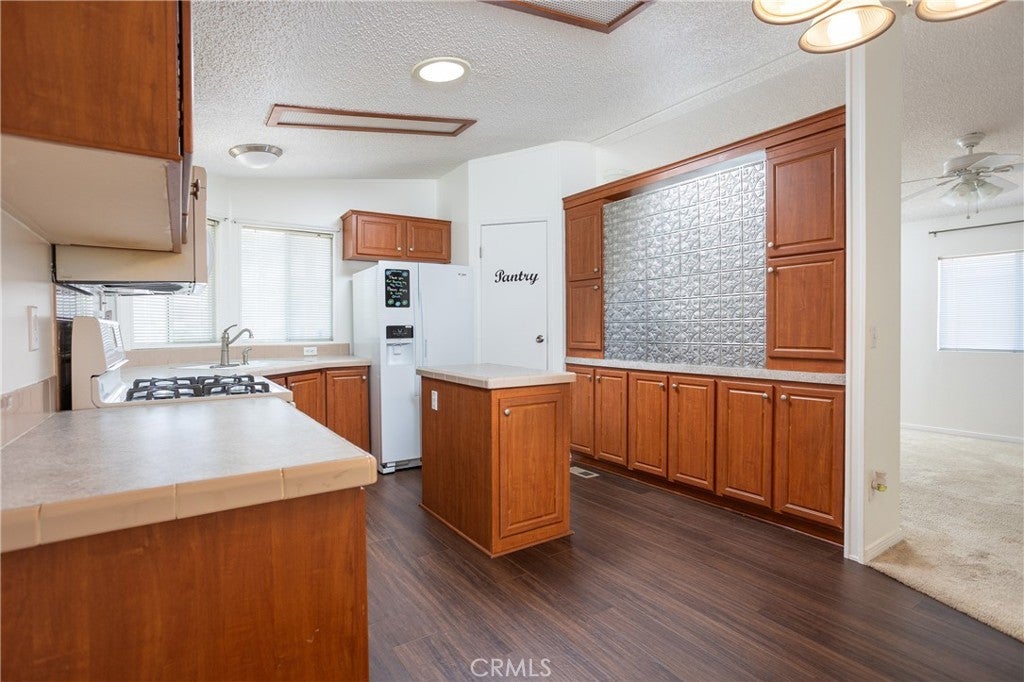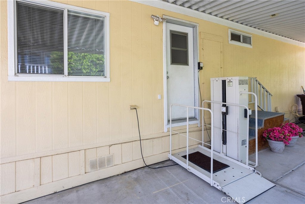 BUYERS DON'T WAIT! Seller just installed a new roof and reduce the price! Motivated Seller! Discover this charming and move-in-ready home featuring two spacious bedrooms and two bathrooms. Enjoy the bright sunny patio perfect for outdoor entertaining, leading into a welcoming living room with plenty of natural light. The modern kitchen boasts elegant wood floors, a large bay window, and a handy kitchen island, making meal preparation enjoyable. Adjacent to the kitchen is a dining area ideal for family gatherings. Conveniently located the hallway connects to the laundry room and back door, which is equipped with a chair lift for added accessibility. The private main suite offers a relaxing retreat with an attach bathroom featuring a separate tub and shower. BUYERS DON'T WAIT! The second bedroom provides comfortable space for family or guests. Step outside to a fully landscape backyard lush shrubs and greenery-your private outdoor oasis. The front yard is beautifully maintained, enhancing curb appeal. Recently professionally cleaned, including carpets, the home shines and is ready for its new owners. The side door has an electric lift, making accessibility a breeze, but the original stairs are available if you prefer. The backyard features a large shed for extra storage, and the carport will easily fit two vehicles. Perfectly situated in a friendly community with easy access to local amenities, parks and highways. This property offers comfort, convenience, and exceptional value. Schedule your tour today and experience all that this wonderful home has to offer.