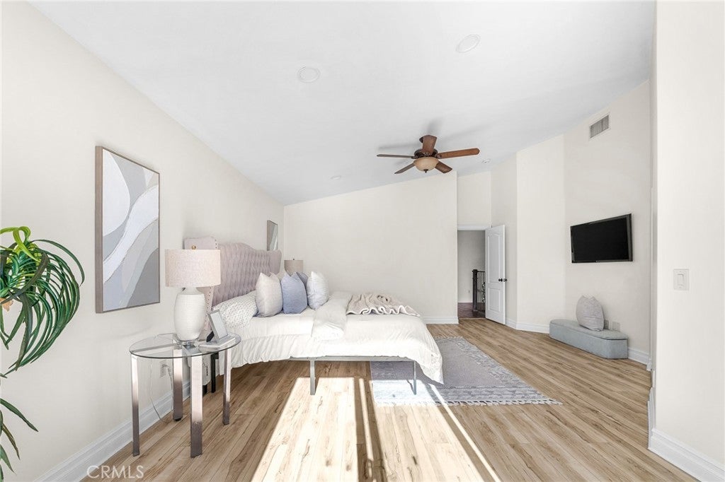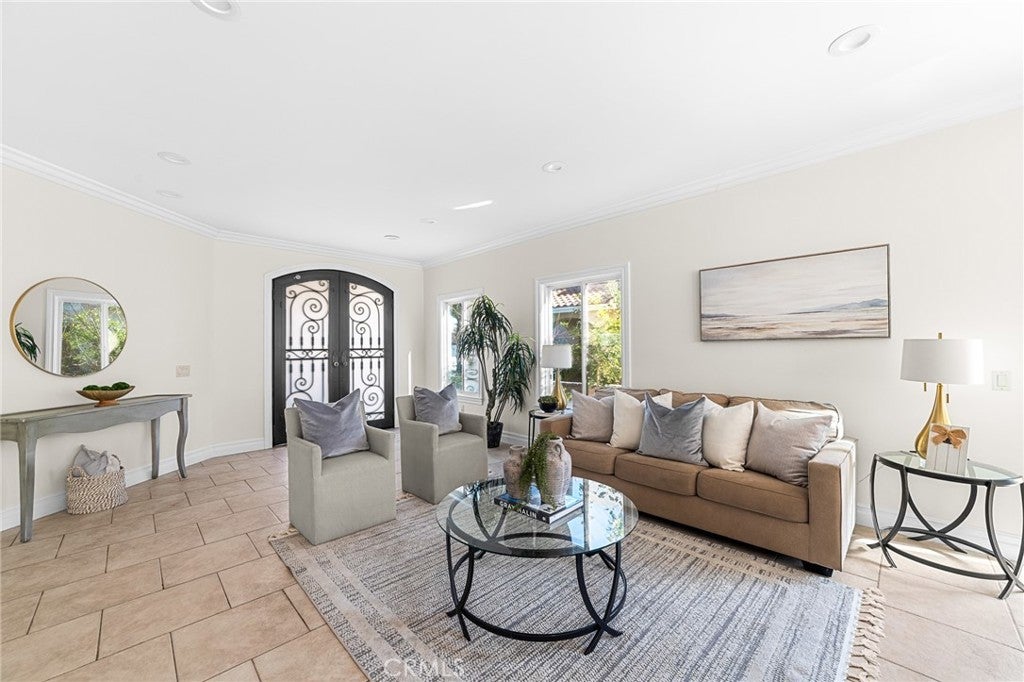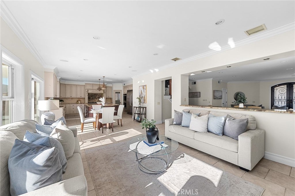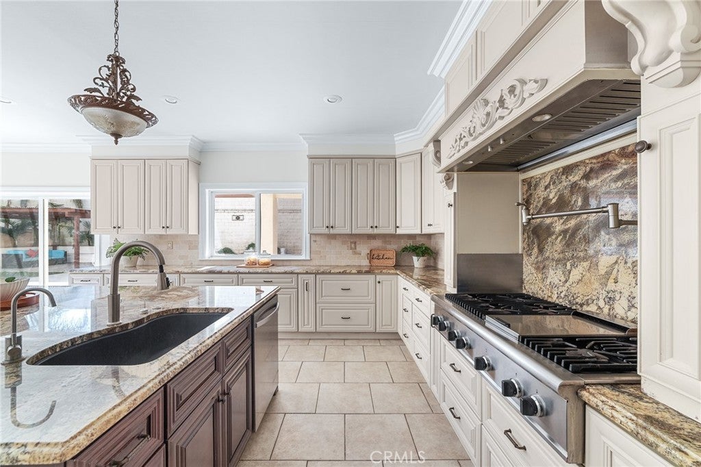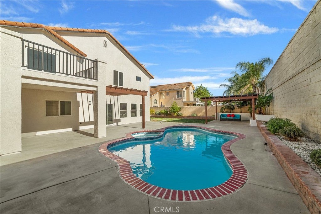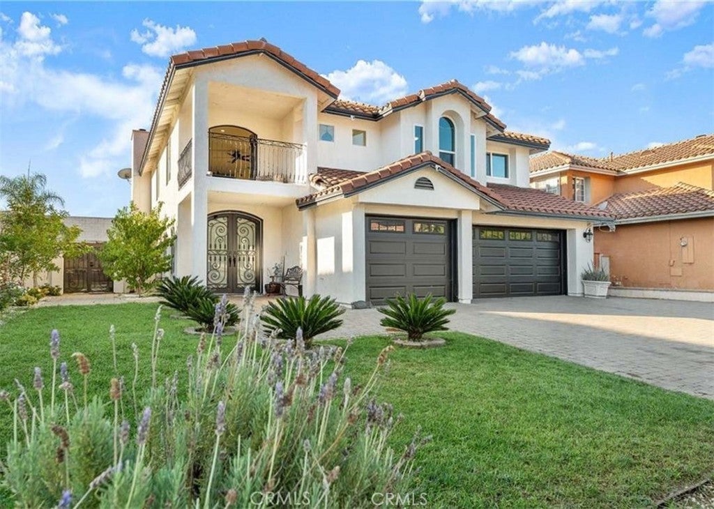 Exceptional elegance defines this custom pool home nestled in one of Rancho Cucamonga’s most prestigious neighborhoods. Offering approximately 3,487 sq. ft. of living space, this elegant residence was crafted with exceptional attention to detail and quality finishes throughout. The stunning curb appeal is enhanced by beautifully manicured landscaping, fragrant rose bushes, and intricate paver work that lead to striking wrought iron double doors. Inside, you’ll find an inviting floor plan filled with natural light, rounded corners, crown molding, high ceilings, and timeless tile flooring. The formal living and dining rooms are ideal for entertaining, while granite pony walls define the spaces without sacrificing the open feel. At the heart of the home is a true chef’s kitchen showcasing an expansive island with exotic granite, custom soft-close cabinetry, and premium stainless steel appliances—all included. Highlights include a built-in refrigerator and freezer, commercial-grade range with pot filler, warming drawer, trash compactor, and walk-in pantry. The adjacent family room offers a stately fireplace and built-in speakers, creating a warm yet sophisticated gathering space. The first floor also features a private guest bedroom and a full bath with a walk-in shower, plus a well-appointed laundry room with ample cabinetry and a prep sink. A graceful wrap-around staircase leads to the second level, where a spacious bonus room and private balcony capture gorgeous mountain views. The luxurious primary suite is a true retreat with its own balcony overlooking the backyard, a spa-inspired ensuite with jetted tub, dual vanities, heated bidet, natural stone finishes, and a digital walk-in shower system. The custom walk-in closet includes built-ins. Three additional bedrooms and a stylish guest bath complete the upstairs. Step outside to a resort-style backyard featuring a sparkling pool and spa, and low-maintenance landscaping with decorative concrete and rock accents. The interior and exterior of the home were recently painted, brand new water heater and the pool was recently replastered. The home also has dual A/C units to ensure year-round comfort. A rare opportunity to own a meticulously designed custom home combining luxury, comfort, and location—just moments from top-rated schools, parks, and shopping in beautiful Rancho Cucamonga.