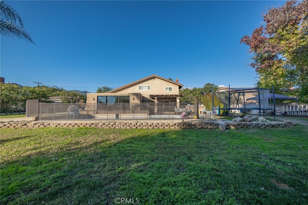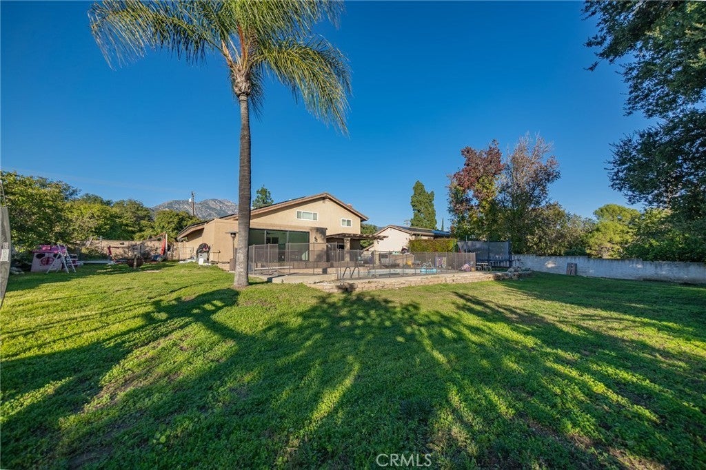 Entertainers’ dream with a touch of DIY potential, set on a generous half-acre lot on a tree-lined street in the beautiful city of Upland. This four-bedroom home is in good condition overall and ready for a buyer who enjoys a few finishing touches. Expansive, light-filled living spaces. Formal entry opens to a bright living room featuring cathedral ceilings and a large window looking out to the neighborhood, seamlessly flowing into the formal dining room. The formal dining room mirrors the living room’s cathedral ceiling and provides access to the sizable backyard via sliding glass doors. The kitchen is A cook’s heart of the home highlights white cabinetry, white subway tile backsplash, Carrera marble counters, stainless steel appliances, and a large kitchen island with additional bar seating perfect for casual gatherings. Step down to the family room/den with an accent wall, sliding doors to the yard, a built-in wet bar, and a warm fireplace for holiday gatherings. Four spacious bedrooms include a convenient downstairs bedroom and a master suite upstairs. The master suite features double doors opening to a large balcony with views of the San Gabriel Mountains, along with an ensuite with dual vanities and a generous soaking tub. Enjoy this outdoor paradise, An enormous backyard showcases a covered patio, a cabana by the pool, a large grassy area, and ample space for toys and future enhancements. Situated in the Upland School District, this home is a short drive to parks, dining, and entertainment. The home is in good condition, and there are a few cosmetic projects and minor repairs that could be addressed to personalize it to your taste and maximize its full potential. This presents an excellent opportunity to tailor the space while enjoying its strong layout, generous scale, and desirable features.
