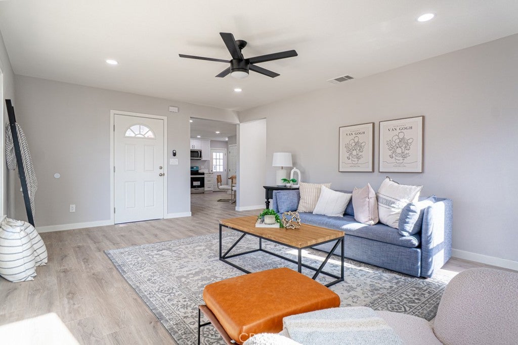 Beautifully Remodeled Single Story Home for Sale in Hemet, CA. This Home is Completely Remodeled and features an Open Floor Plan of 1,349 Sq. Ft., 3 Bedrooms, 2 Bathrooms, new Light-Wood Colored Vinyl Plank Flooring, New Lovely Light Grey Paint, Completely Remodeled Kitchen, Bathrooms, Ceiling Fans, Huge Lot at 10.019 Sq. Ft., 2-Car Detached Garage, Huge Backyard w/ plenty of room for outdoor living. Near all amenities, including shopping centers, parks, entertainment, grocery stores, schools, banks, and restaurants. This home is a Beauty and has a lot to offer! Thank you for showing!
