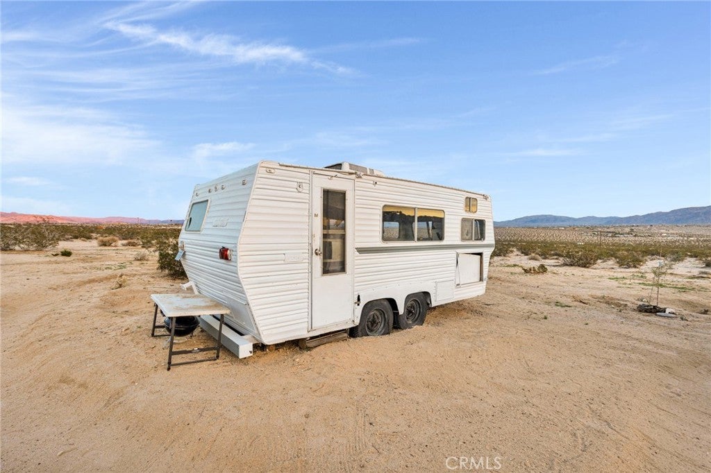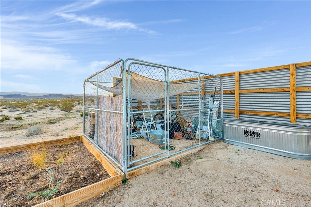 Check out this Rare Desert Opportunity with Utilities in Place! Now is your chance to own a slice of high desert paradise with this unique property offering breathtaking panoramic views that showcase the natural beauty of the Mojave Desert landscape. Key Features: The property currently has a 192 sq ft structure on-site with a sleeping area, a refrigerator, and other personal items. The bonus is the additional electrical and water access already at the property lines. The current owner has begun construction on an outdoor shower for desert living convenience and has installed established gardening areas perfect for sustainable living. The property has a secure dog kennel area for your furry companions to remain safe or this area could also be used as exterior, lockable storage. This hidden gem provides an excellent foundation for those seeking a desert retreat or looking to develop their dream getaway. The hard-to-find combination of electric and water access makes this a standout opportunity, saving you significant time and investment compared to other properties. This property currently has running water through an installed water storage tank, but another attribute that comes with the property is the installed water meter along the properties southern boundary line. The structure, however, is not currently connected to the water meter, but having access to the water grid is still a very valuable asset to have in the area. This parcel is currently zoned as a recreational cabin. Buyers should verify with the local planning department regarding requirements and feasibility of converting to full residential use. This presents a unique opportunity for the right buyer to create their vision to have these breathtaking views. Whether you're seeking a weekend escape, a base camp for Joshua Tree adventures, or a project with expansion potential, this property offers the essential infrastructure for building upon. The stunning desert vistas provide a daily reminder of why so many are drawn to high desert living. Don't miss this chance to own a piece of 29 Palms and all it has to offer!