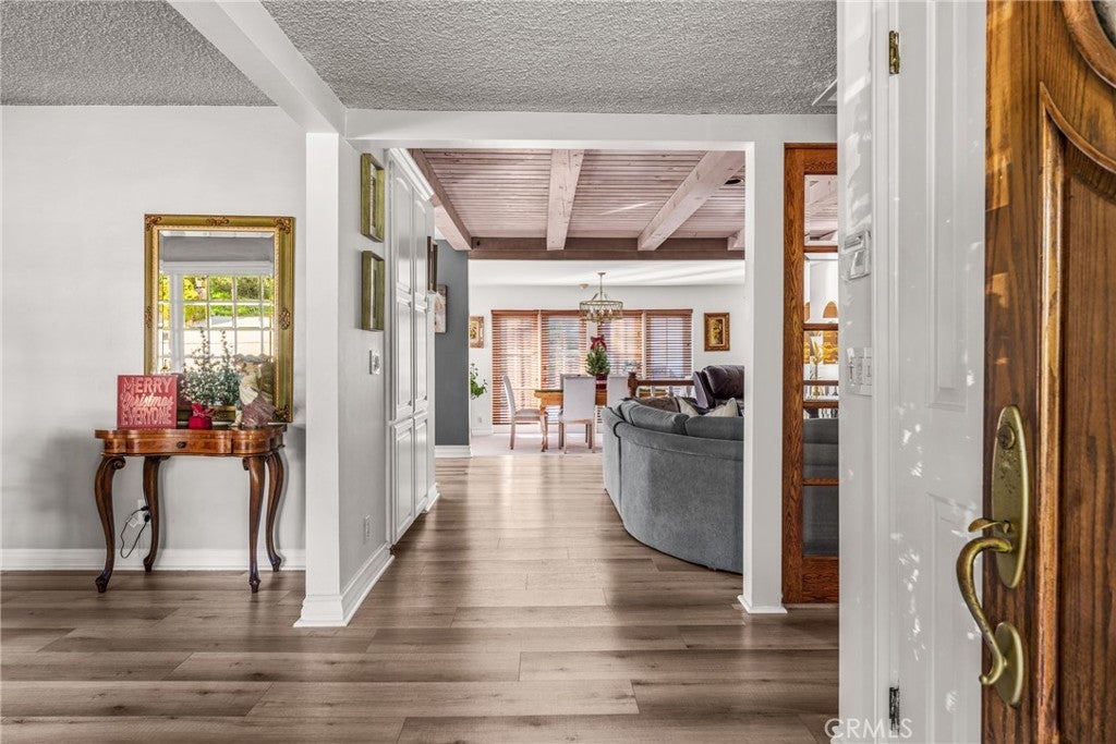 Beautifully maintained Covina Hills home located in a quiet neighborhood with scenic views. This 3-bedroom, 2-bath residence with an office or nursery offers just under 3,100 sq ft of living space on a lot just under 14,000 sq ft, ideal for entertaining and comfortable everyday living. The light-filled kitchen features a skylight, Sub-Zero refrigerator, vegetable prep sink by the stove, new trash compactor, ample cabinetry, and pantry storage. French doors open to the backyard, creating seamless indoor-outdoor flow. Enjoy a private backyard with pool, perfect for gatherings, plus mature avocado, almond, and lemon trees. The enclosed laundry room includes extensive cabinetry, a wardrobe closet, and a laundry chute from the primary bathroom. The primary bathroom offers exceptional storage with 18 drawers plus cabinets. Additional highlights include a separate light-up shoe closet, spacious bedrooms, and flexible living areas. A well-designed, fun, and functional home in a desirable Covina Hills setting.