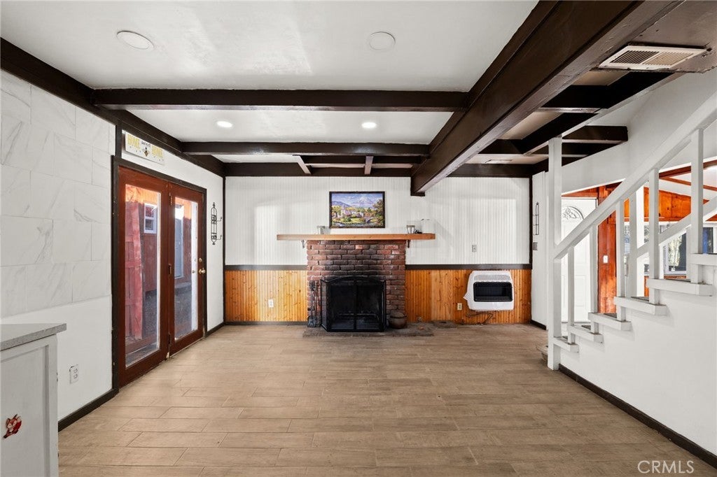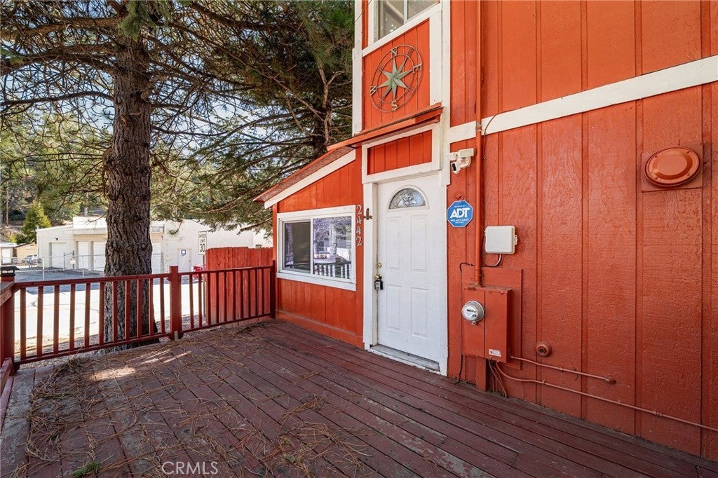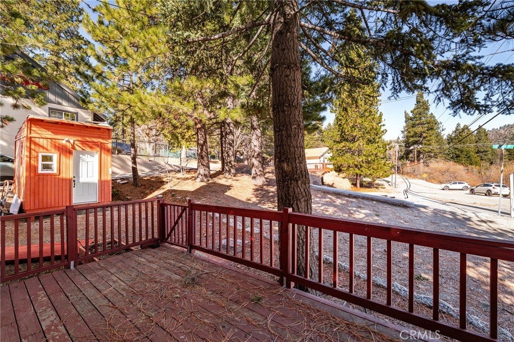 Welcome to your private mountain escape in the heart of Running Springs. This charming 3-bedroom, 2-bath home sits securely behind a full enclosed gate, surrounded by mature pines and crisp alpine air. The inviting living room features a stone fireplace and open layout connecting to the dining area and kitchen, ideal for gatherings and cozy winter nights. Large windows bring in natural light and frame forest views throughout the home. The spacious primary bedroom and two well-sized guest rooms provide comfortable accommodations, whether full-time or seasonal living. Outside, enjoy a fully fenced yard and a deck in the front of the house, relaxing, or stargazing. Conveniently located minutes from Snow Valley, Lake Arrowhead, and local shops, this home offers the perfect blend of privacy, adventure, and mountain living. Your Running Springs getaway awaits—move-in ready and full of charm.