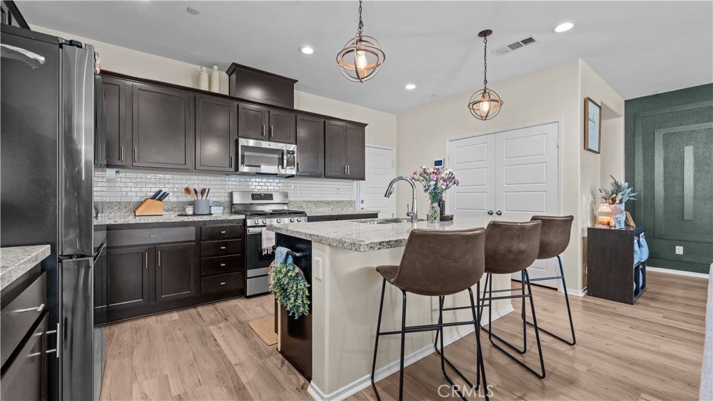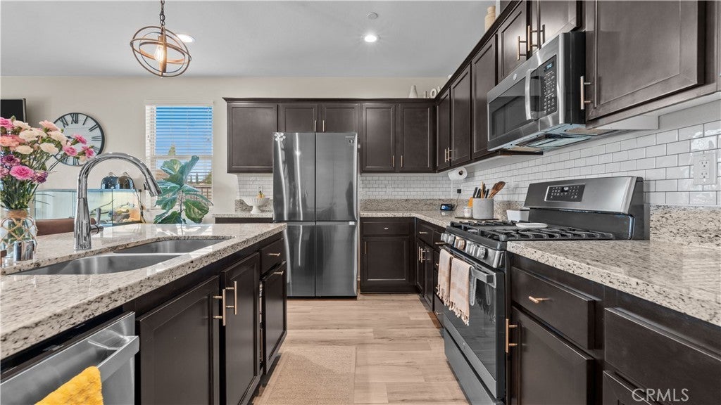 Welcome to 1315 Redbud Ave, a beautifully upgraded 4-bedroom, 3-bath home located in the highly desirable Sea Breeze at Sundance community in Banning. This spacious and modern property features a bright open floor plan with newly renovated finishes, upgraded lighting fixtures, custom accent walls, and a barn door in the primary bedroom for added charm and privacy. Perfect for families and entertainers, the home offers a downstairs bedroom and full bath—ideal for guests or in-law living. The kitchen features a center island, perfect for cooking, gathering, and everyday function. Sitting on the largest lot in the neighborhood, the expansive backyard has been thoughtfully finished with new cement and turf, a fully fenced playground area for kids, and a rod iron dog run—a rare combination of beauty, space, and functionality. Additional features include upgraded flooring, smart home tech like Nest thermostat and Ring doorbell, and leased solar panels (SunPower - $45/month) for energy efficiency. Enjoy resort-style amenities: 4 pools, pickleball and basketball courts, walking trails, dog parks, playgrounds, and a fishing pond. Conveniently located near shopping, schools, and quick access to major freeways. Newly upgraded, move-in ready, and packed with potential—this is a home you don’t want to miss!