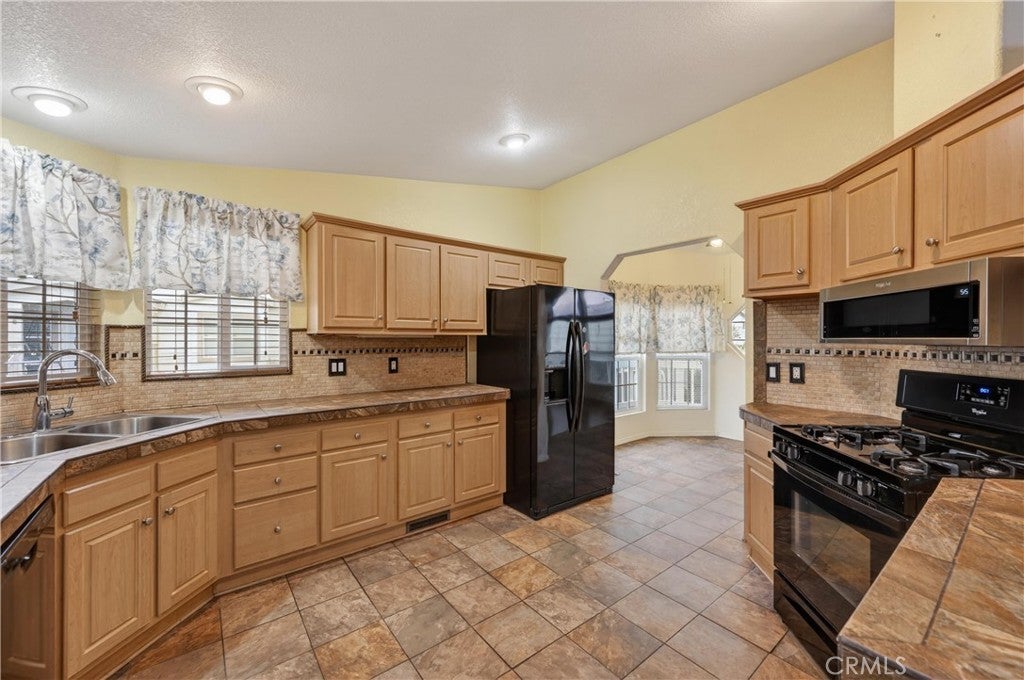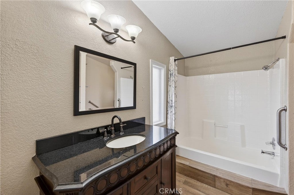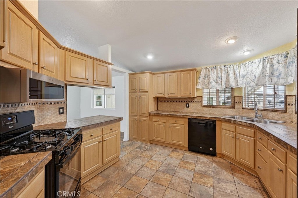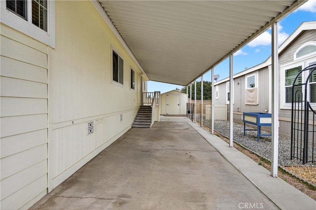 A well-appointed double-wide mobile home situated in the senior (55+) Mission Park, located near the community center that is equiped with a large event area, pool, and guest parking. This home has a gorgeous brick and tile entry with roses. With no neighbors behind you, you'll find this home has a more quiet location. Inside, you’ll find 3 generously sized bedrooms with ceiling fans and two bathrooms. The large kitchen has been meticulously cared for, with porcelain counters and floors. Equipped with a Whirlpool gas range/oven, dishwasher, microwave and refrigerator, included. The dining nook is just the right size for meals and entertaining. The huge living area is adjacent to the kitchen in this open concept floor plan. Beautiful wood-like floors throughout are commercial grade and are easy to care for. Both bathrooms have gorgeous upgraded dark wood vanities with granite countertops, and newer tall toilets. The shed has electricity, with lights and plugs, and is ideal for storage and play. The carport can accommodate 3 mid-sized vehicles. There are only 76 spaces in this well cared community, which is centrally located near shopping, dining and medical offices.