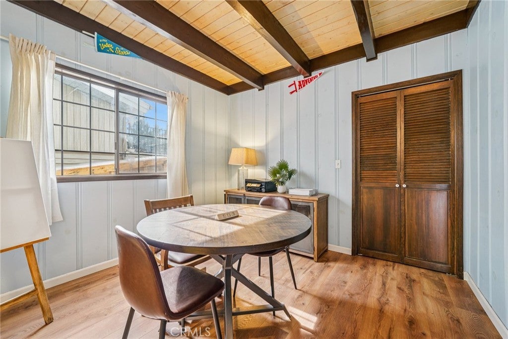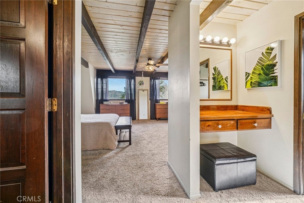 Ceiling Fan(s), Storage, Attic, Walk-In Closet(s), Beamed Ceilings, Living Room Deck Attached, Pull Down Attic Stairs, Wood Product Walls, Workshop