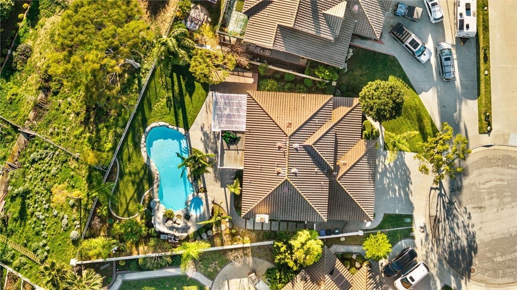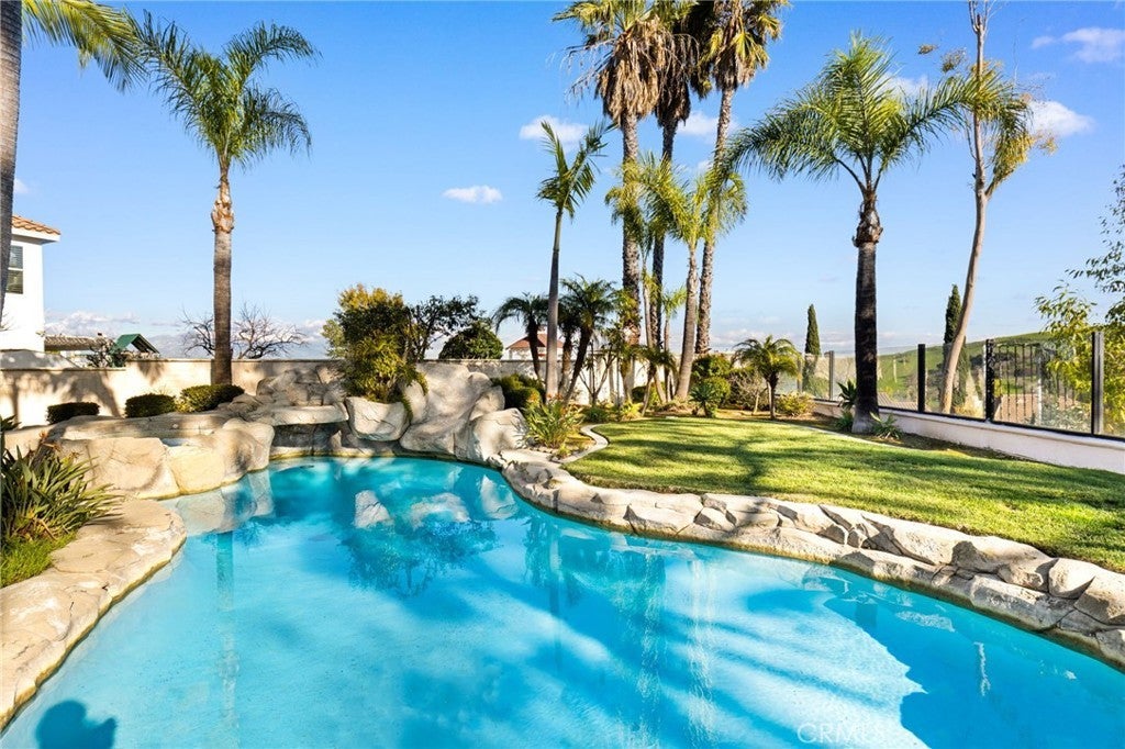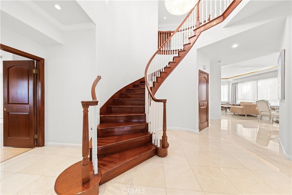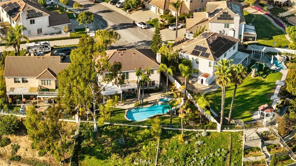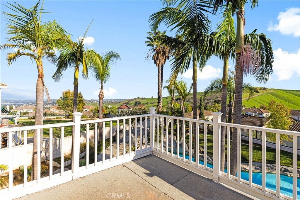 Located in the highly sought-after Vintage Point community of Rowland Heights, this exceptional residence offers a rare combination of prime location, spacious living, and resort-style outdoor amenities. Situated on a quiet cul-de-sac, this beautifully maintained home features 5 bedrooms and 5.5 bathrooms (2 bedrooms, 2.5 bathrooms downstairs), with all bedrooms designed as en-suite, offering privacy and comfort ideal for multi-generational living or large households. Upon entry, you are welcomed by double front doors and soaring high ceilings, creating a grand and elegant first impression. The open and airy layout is filled with natural light and designed for both everyday living and entertaining. The living room with travertine tiles, formal dining room with custom chandelier, large kitchen with granite counter tops, center island, walk-in pantry. Open and bright family room with fireplace. Downstairs with two suites, plus a half bathroom. Follow the elegant spiral stairs to upstairs loft with a balcony. The primary bedroom with walk-in closet, primary bathroom with jacuzzi bathtub and separate shower. All the 5.5 bathroom remodeled. Other features include, custom window curtains, wood shutters, recessed lights, crystal chandeliers, crown moldings. The large backyard is designed for relaxation and entertainment, featuring patios, swimming pool & spa, built-in BBQ, enjoy the 180-degree of city lights, mountain, rolling hills, and even the ocean views. This is a rare opportunity to own a high-quality, well-kept home in one of Rowland Heights’ most desirable neighborhoods, offering space, privacy, and lifestyle in one exceptional property.