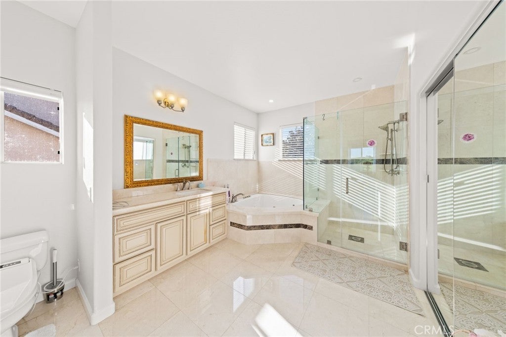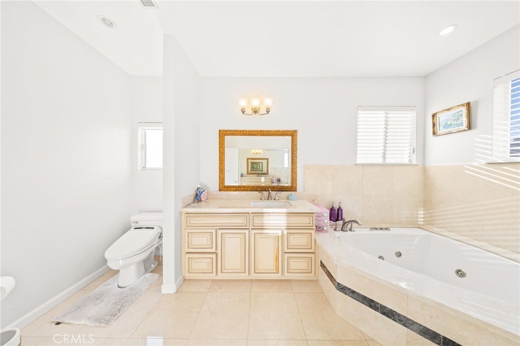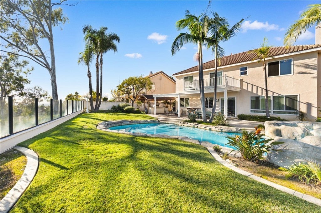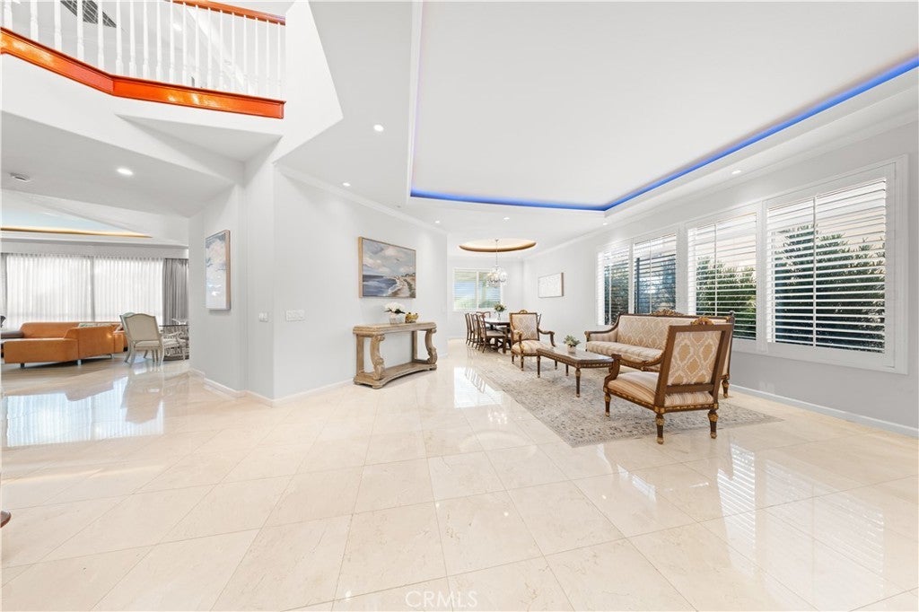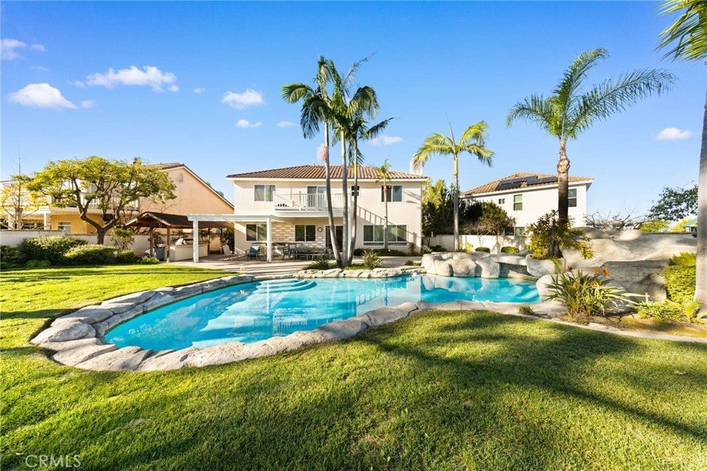 Located in the highly sought-after Vintage Point community of Rowland Heights, this exceptional residence offers a rare combination of prime location, spacious living, and resort-style outdoor amenities. Situated on a quiet cul-de-sac, this beautifully maintained home features 5 bedrooms and 5.5 bathrooms (2 bedrooms, 2.5 bathrooms downstairs), with all bedrooms designed as en-suite, offering privacy and comfort ideal for multi-generational living or large households. Upon entry, you are welcomed by double front doors and soaring high ceilings, creating a grand and elegant first impression. The open and airy layout is filled with natural light and designed for both everyday living and entertaining. The living room with travertine tiles, formal dining room with custom chandelier, large kitchen with granite counter tops, center island, walk-in pantry. Open and bright family room with fireplace. Downstairs with two suites, plus a half bathroom. Follow the elegant spiral stairs to upstairs loft with a balcony. The primary bedroom with walk-in closet, primary bathroom with jacuzzi bathtub and separate shower. All the 5.5 bathroom remodeled. Other features include, custom window curtains, wood shutters, recessed lights, crystal chandeliers, crown moldings. The large backyard is designed for relaxation and entertainment, featuring patios, swimming pool & spa, built-in BBQ, enjoy the 180-degree of city lights, mountain, rolling hills, and even the ocean views. This is a rare opportunity to own a high-quality, well-kept home in one of Rowland Heights’ most desirable neighborhoods, offering space, privacy, and lifestyle in one exceptional property.