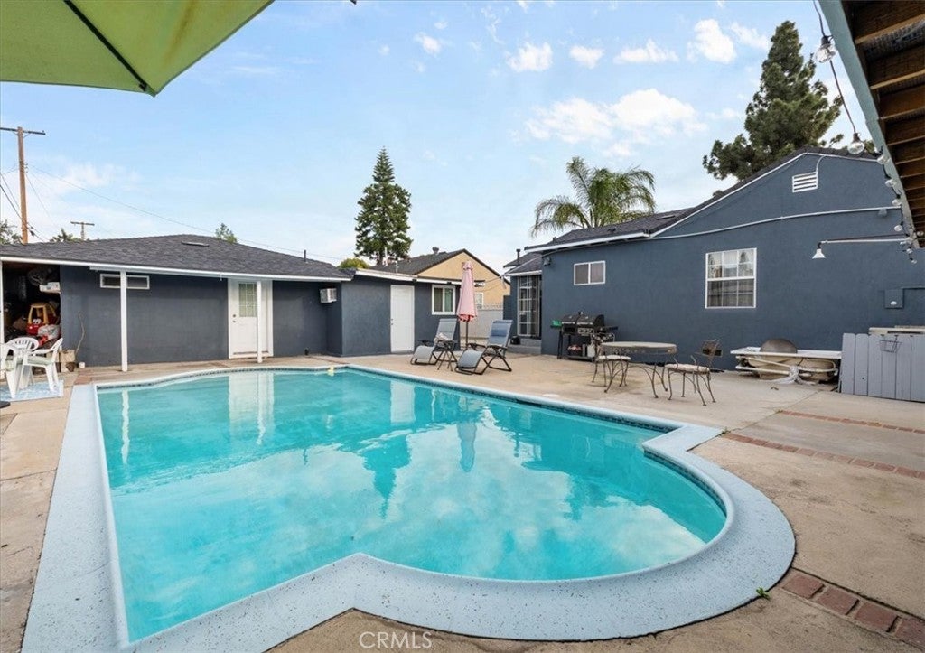 **Unique Opportunity with Pool and Two Accessory Units!** This versatile property features a main residence offering approximately 1,154 sq ft of living space, including a welcoming living room with fireplace, dining area, kitchen with adjacent laundry, three bedrooms, and two bathrooms. The garage has been converted into two separate accessory units: one featuring a studio with bathroom, and the other offering a living room, kitchen, bedroom, and bathroom. **Buyer to verify permits and approvals with the City of Pomona**, as these units do not appear to be permitted. Additional highlights include a long concrete driveway, covered patio, in-ground pool, and ample outdoor space ideal for entertaining or extended family living. Conveniently located near the **71, 10, and 60 freeways**, with close proximity to major employment centers and shopping.