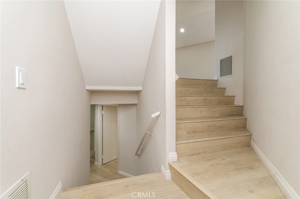 Turn key! This private end-unit split-level townhome is located in the gated Las Brisas community. The split-level 4-bedroom, 3-bathroom layout is designed for a practical daily flow and captures panoramic city light and hillside views. Entry is through a secure front gate, leading into a floorplan that balances comfort with a functional lifestyle. The main living level features an open floor plan with high ceilings that allow for ample natural light. The living room connects smoothly to the kitchen and dining area, creating an efficient flow for daily use and gatherings. The kitchen features a clean, functional design with reimagined white cabinetry and matte black hardware. A full suite of stainless steel appliances anchors the space. Natural light from the window and skylight reflects off the tile countertops, while new vinyl plank flooring runs underfoot. The layout is designed for an efficient workflow, connecting the cooking area directly to the dining space. This level also offers access to two private balconies where you can unwind while taking in the gorgeous views. A few more steps down to three additional bedrooms in upper level, including a masterbedroom and a bathroom on the same level, accommodating a growing family setup. Other property highlights including : Laminated flooring runs throughout the home, laundry hook ups in garage, 2 car attached garage, 1 bedroom and 1 bath at top level. Guest parking is conveniently located directly in front of the unit, making visitor access simple. Monthly HOA fees include Pool, Spa, water, trash, fire insurance, partial termite, gated security, and maintenance of all common areas, supporting a low-maintenance lifestyle. The location offers easy access to the 57 and 60 freeways and is close to local plazas and a variety of dining options. The home is located within the Walnut Valley Unified School District. Some photos are virtually staged.
