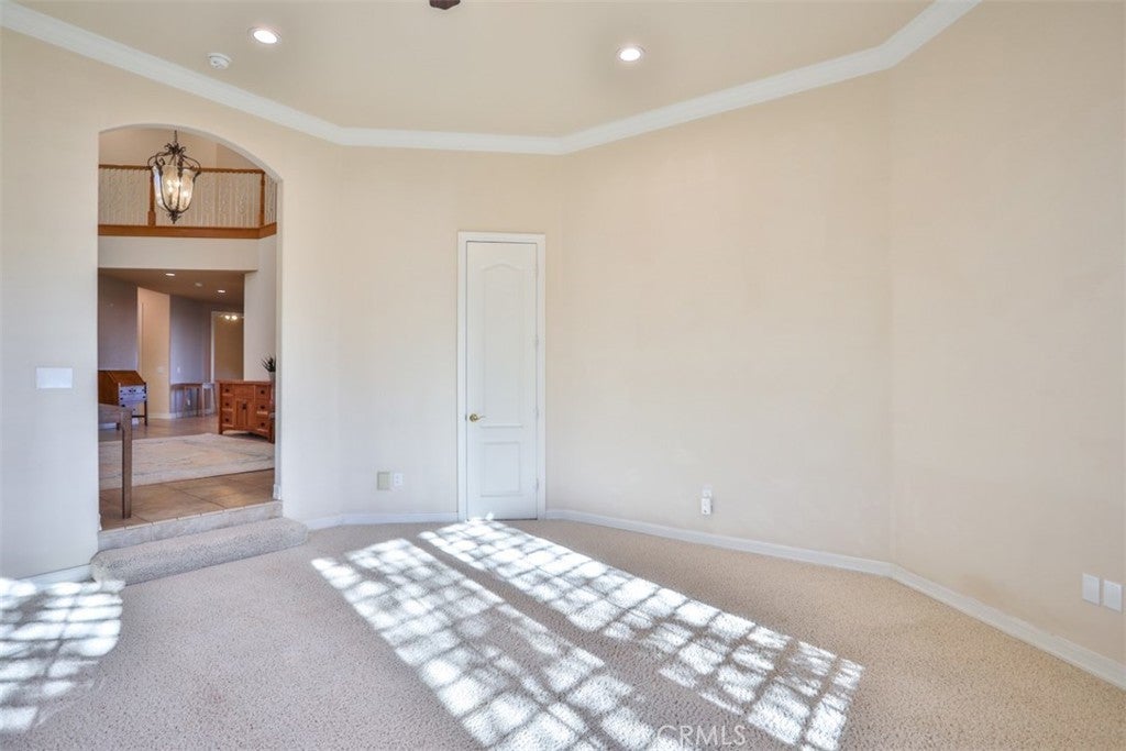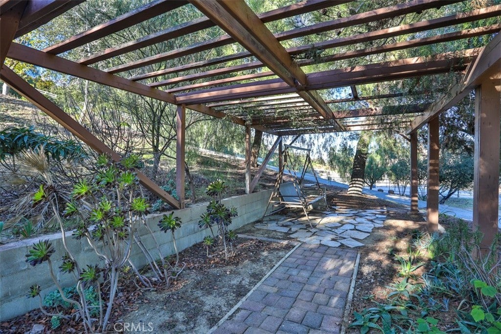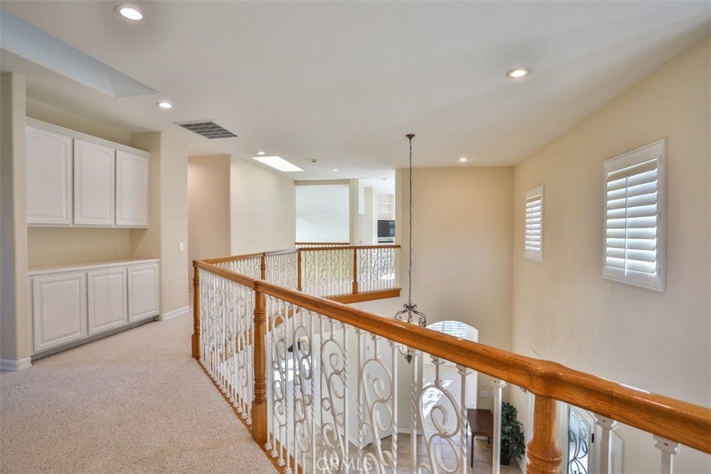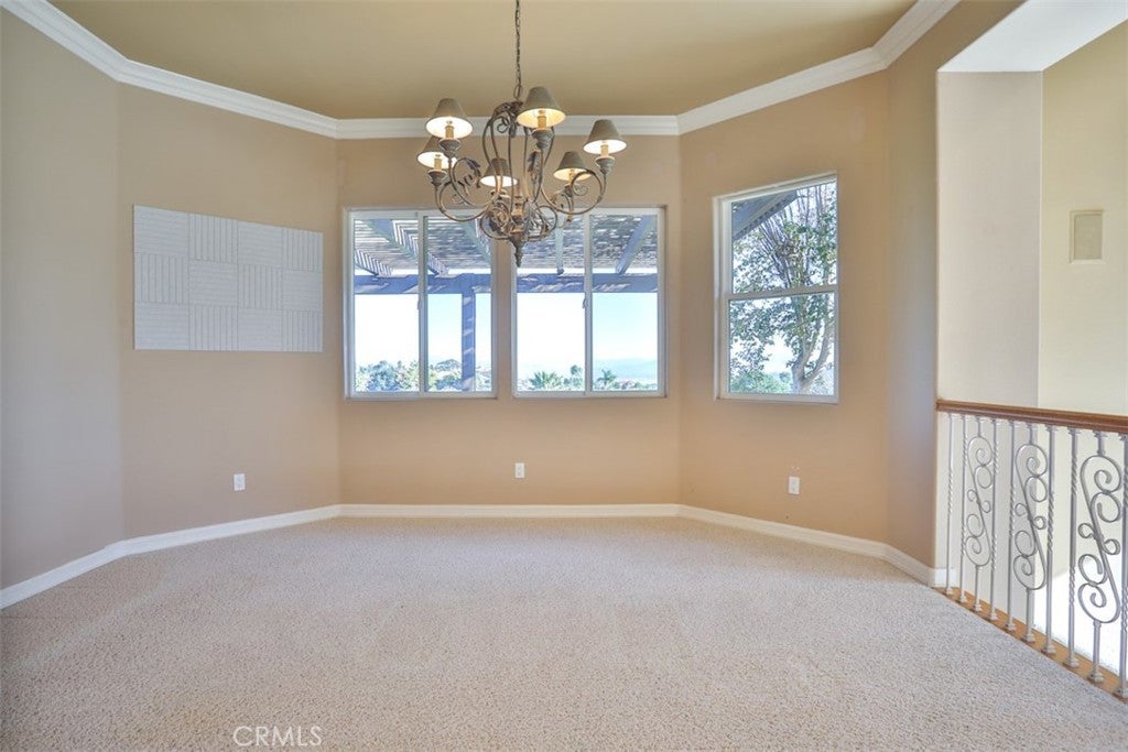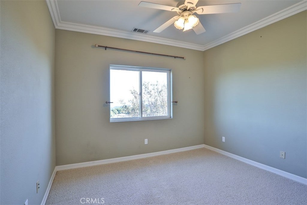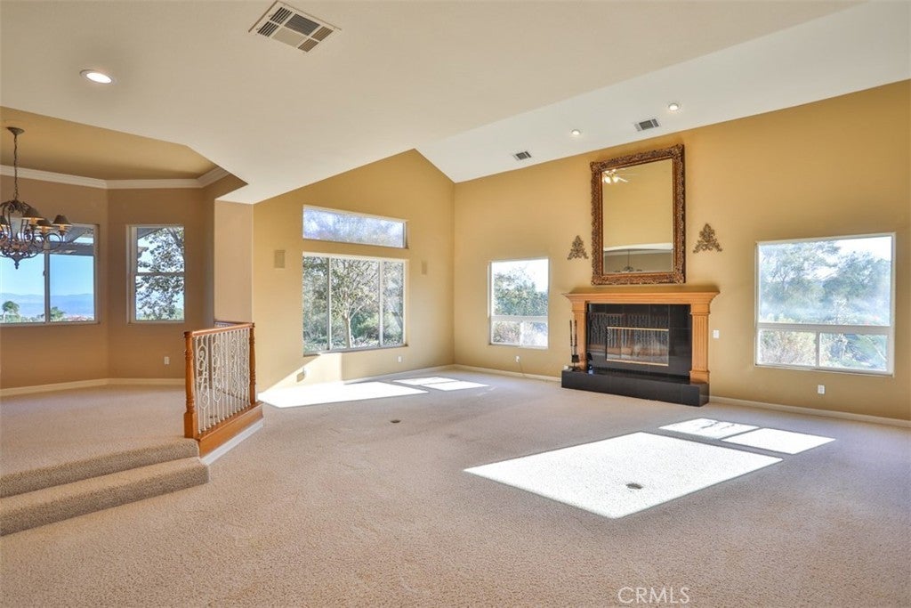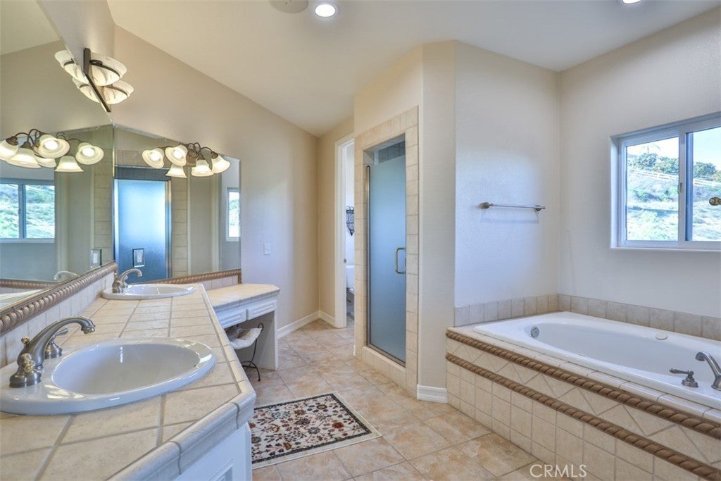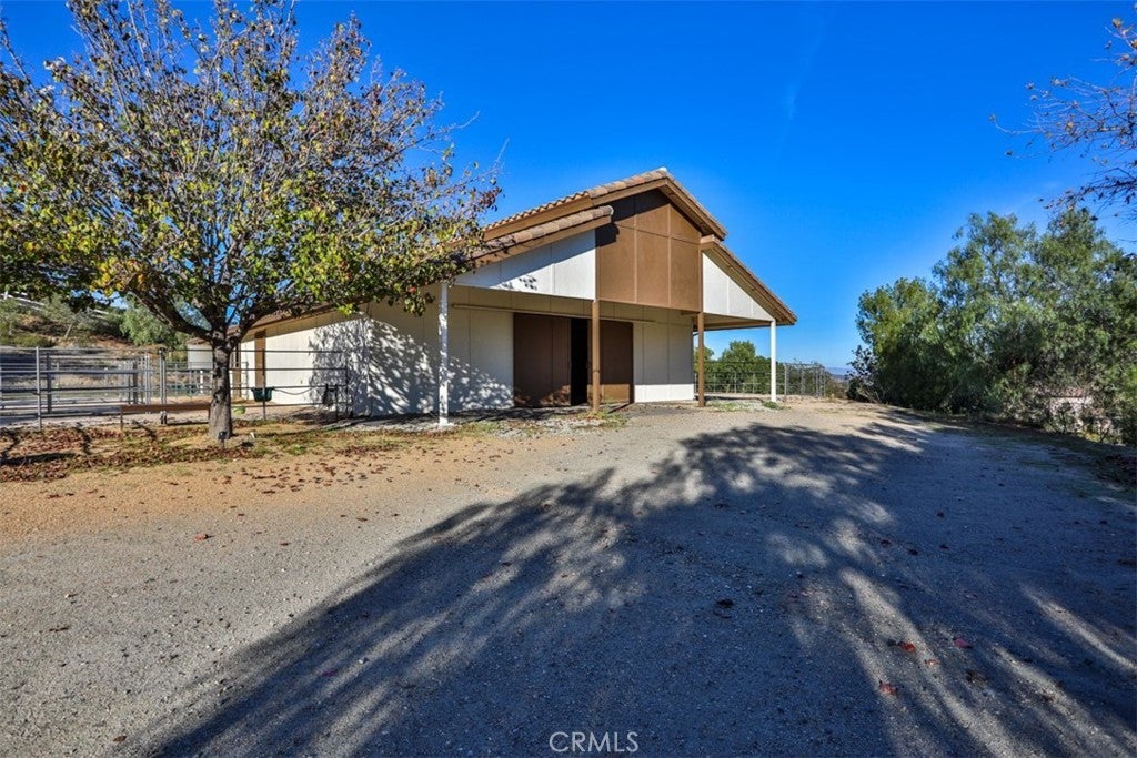 Stunning La Cresta Estate with Panoramic Valley, City-Light & Mountain Views Perched on just over five fully fenced acres, this exceptional custom La Cresta estate offers breathtaking views of the Temecula Valley, city lights, and surrounding mountains. A dramatic stone and wrought-iron gated entry leads to an expansive circular paver driveway, porte cochère, and elegant valet-style entrance. Inside, a grand foyer with soaring ceilings opens to an expansive great room featuring a fireplace, built-ins, and walls of windows framing the spectacular scenery. The open-concept layout includes a formal dining room, sunny breakfast nook, and a well-appointed kitchen with large island, built-in refrigerator, ample storage, and ideal for both entertaining and everyday living. The main-level primary suite offers a walk-in closet, dual vanities with makeup area, soaking tub, and spacious walk-in shower. Also on the main floor are a large office with closet, powder room, full bath, and an oversized laundry room with chute. Upstairs, a sweeping curved staircase leads to a secondary primary or junior suite with ensuite bath, two additional bedrooms, a full bath, and a light-filled bonus room/library. Outdoor living is equally impressive with covered patios, manicured grounds, fruit trees, walking paths, and a grassy area with room for a pool. At the highest point of the property, a viewing platform captures unforgettable 360-degree views and star-filled skies. Equestrian amenities include a large breezeway barn with three in-and-out stalls, tack room, workshop, paddocks, round pen, wash stations, and a separate living quarters featuring a bedroom, bathroom, kitchen, and living area with its own septic system—ideal for guests, caretakers, or rental potential. Additional fenced areas accommodate small livestock or gardening. This meticulously maintained, estate includes paid-off solar array, a tankless water heater, and mature landscaping throughout. Located in the desirable Santa Rosa Plateau, enjoy privacy, trails, and open space just minutes from schools, shopping, the 15 freeway, and Temecula Wine Country. A rare opportunity to own a refined equestrian estate offering luxury, versatility, and breathtaking views.