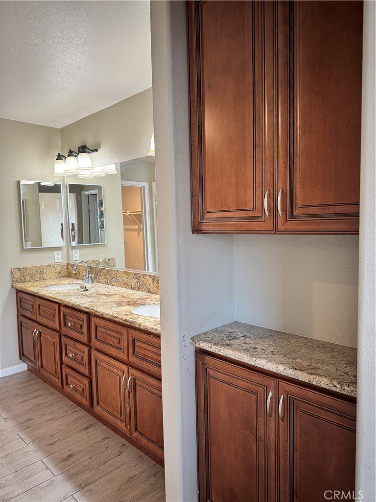 Built in 2017, this beautifully designed two-story home offers 5 bedrooms and 3 bathrooms with modern finishes throughout. The spacious master suite features a double-vanity bath, walk-in closet, wooden linen cabinetry, and a separate shower and soaking tub with city views. The first floor showcases light-colored tile flooring, an elegant iron entry door, a staircase with a wooden handrail and wrought iron balusters, and a beautiful antique gold French country crystal chandelier which can be found throughout the property on both floors. The kitchen features an Island for ample prep space & a walk in pantry for maximum storage space. Upstairs, enjoy wood flooring, an open floor plan, and a bedroom with a private balcony offering mountain views. Have more than one vehicle? No problem, this beautiful property has a two-car garage as the cherry on top. Conveniently located just off the 210 freeway for easy commute and less than a mile from the Renaissance Marketplace for easy access to shopping, dining, and entertainment. Come see it for yourself and imagine the possibilities!